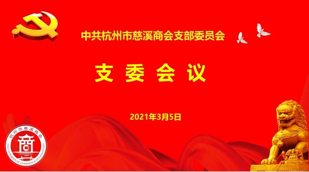 2021年3月5日下午,中共杭州市慈溪商会支部委员会召开支委会议,认真研究2021年工作计划。商会副会长、支部书记史文君,组织、青年委员胡鹏旭,纪监、宣传委员黄承参加会议。