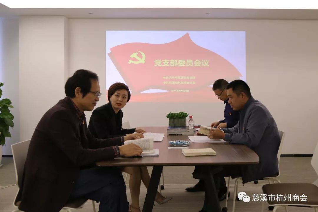 2019年10月29日,中共杭州市慈溪商会支部和中共慈溪市杭州商会支部在浙商创投中心召开“不忘初心、牢记使命”主题教育党员学习交流会。2个商会的党员和入党积极分子共11人参加了会议。常务副会长、中共慈溪市杭州商会支部书记华晔宇主持会议。