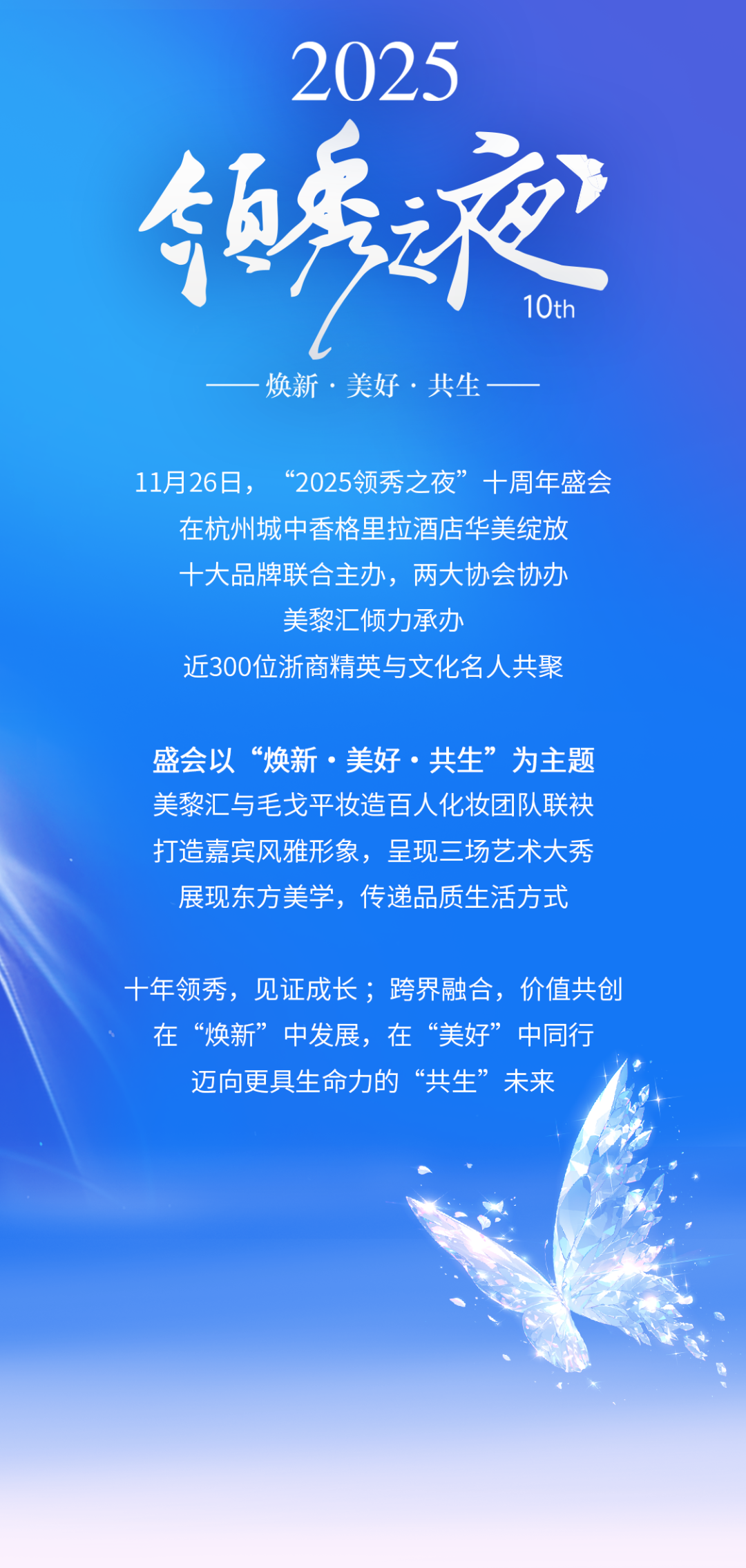 十年领秀,十年焕新。这场活动不仅是杭州企业家群体的年度时尚盛会,还是之江两岸“不断实现人民对美好生活向往”的生动实践。在这里,我们看见文化自信的绽放,看见精神富有的模样,更看见一座城市与它的建设者们共同书写的美好生活新篇章。