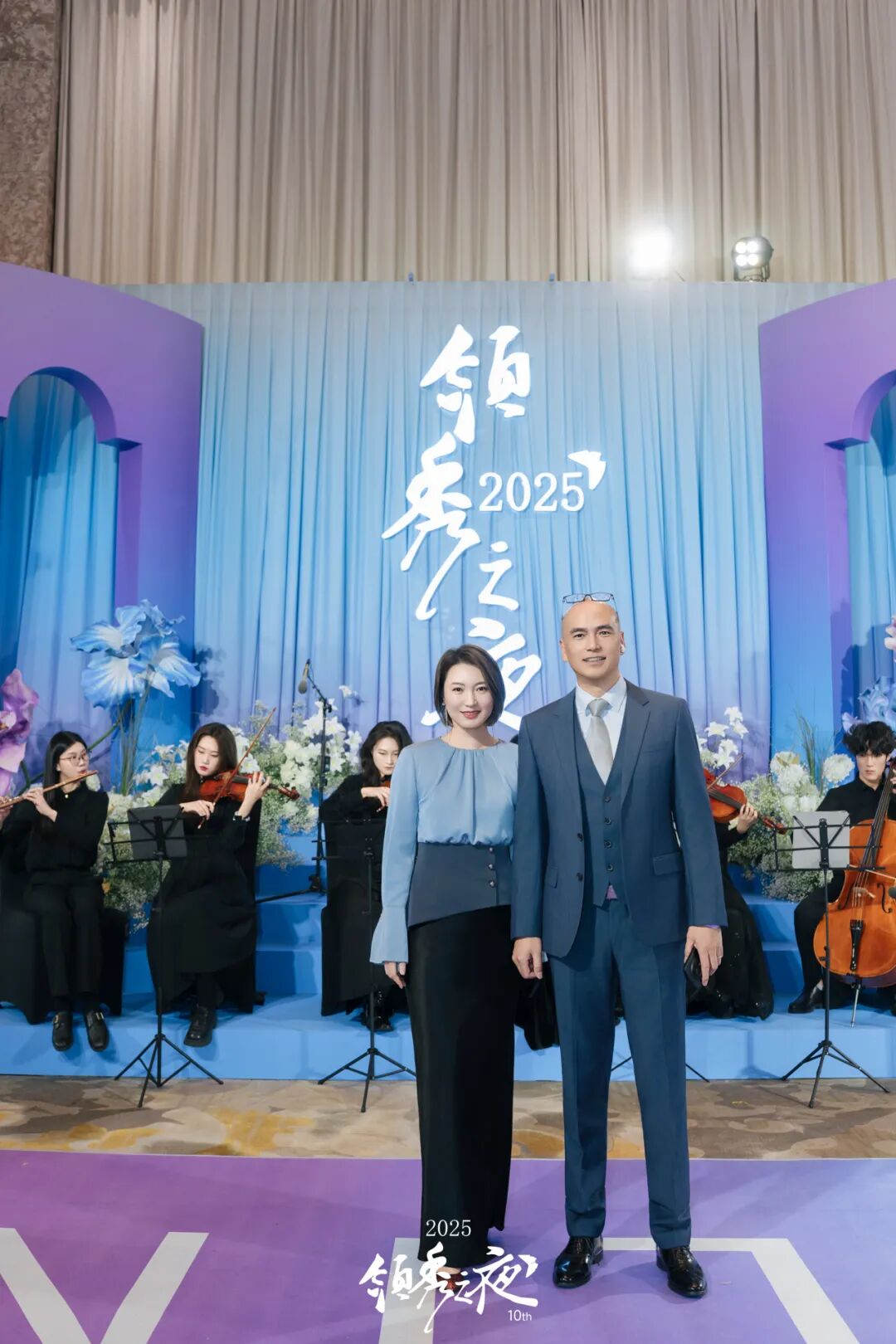 由专业的化妆造型专家组成的评审团,从现场200多位嘉宾中,最终评选出“2025领秀·红毯奖”周燕燕、张晶,“2025领秀·活力奖”夏赛丽、朱琴毅,“2025领秀·风采奖”刘颖、黄思文。