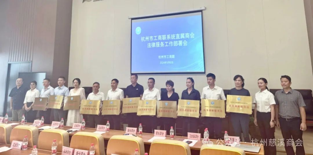 9月6日,杭州市工商联组织召开直属商会法律服务工作部署会。会议传达学习全国工商联办公厅关于开展“商会调解基层落实年”活动的通知精神、杭州市工商联(总商会)系统商事调解工作的推进方案,听取区县工商联及商会作商事调解工作经验介绍等,听取市中级法院立案庭、西湖区法院介绍工作开展情况,还参观了西湖区工商联商会调解中心。会议,给杭州市慈溪商会等54家直属商会和行业商(协)会授予“杭州市工商联联合会直属商会商事调解服务站”牌匾。