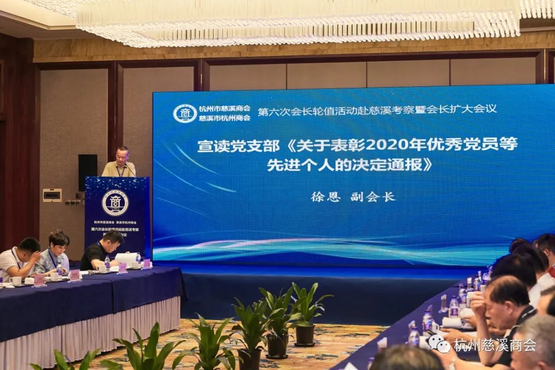 1、慈溪市工商联党委委员、副主席陈百挺讲话。他说,非常荣幸和高兴参加慈溪商会第六次会长轮值活动来慈 溪考察暨会长扩大会议,也感谢黄会长的精心安排。2021年慈溪商会活动丰富、成效显著,无论在服务会员,还是招商引资等方面,特别是促进杭州、慈溪两地交流方面做出了不可替代的贡献,为我们异地商会的建设树立了榜样和标杆。接着,陈主席介绍了慈溪市今年以来社会、经济的基本情况和发展特点。最后祝慈溪商会发展越来越好,祝在座的各位事业兴旺、身体健康!