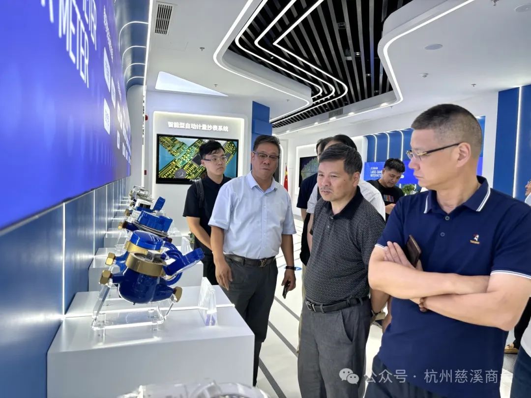 商会一行在钱董事长的带领下,首先参观了山科智能综合展厅。展厅分为发展历程、荣誉资质、合作客户+经典案例、发明专利等模块,充分展现了山科智能为达成“领导智慧水务新方向”这一使命而付出的努力,与会人员都对山科智能的产品、技术、服务等方面给予了高度评价。
