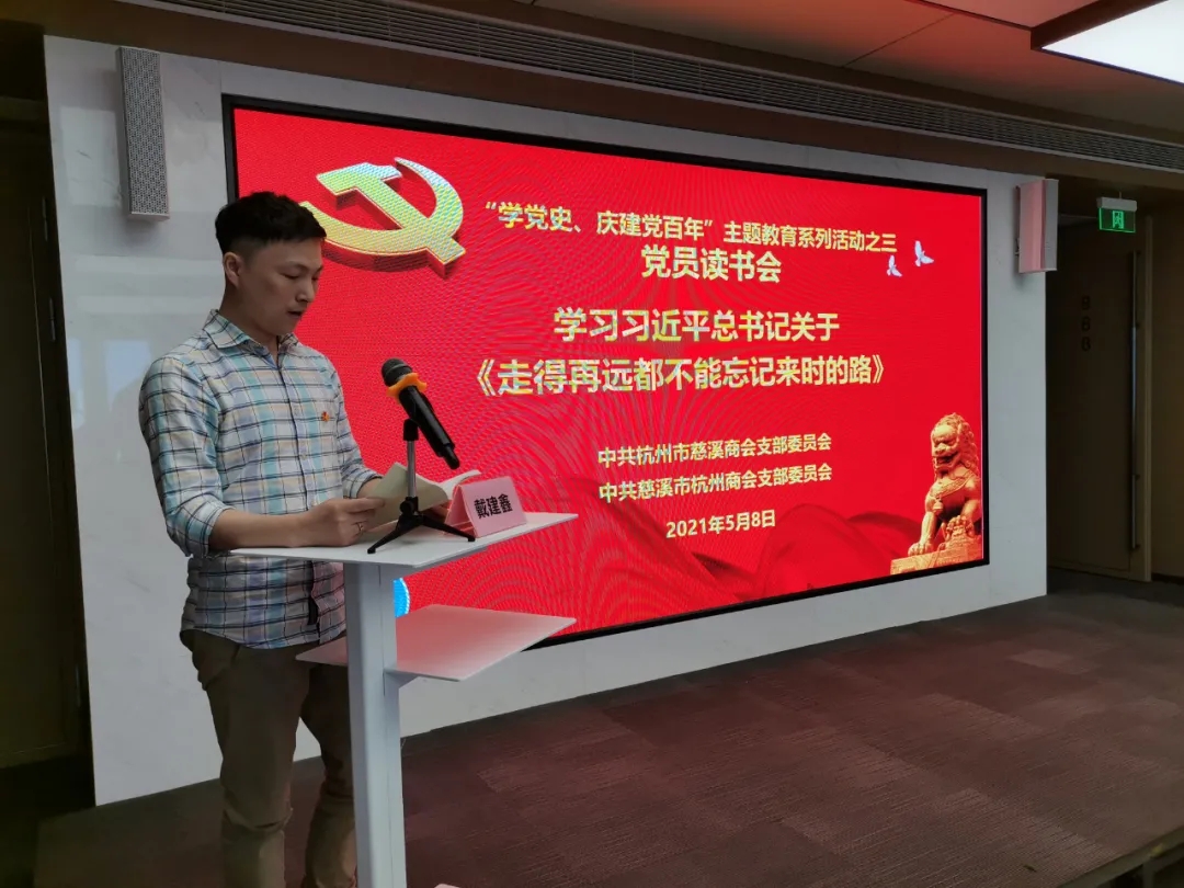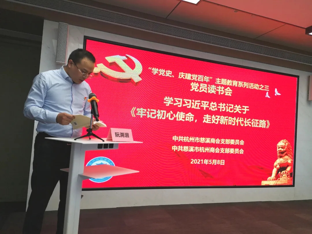 5月8日下午,中共杭州市慈溪商会支部委员会和中共慈溪市杭州商会支部委员会在浙商创投中心召开党员大会,开展“学党史、庆建党百年”主题教育系列活动之三“党员读书会”。常务副会长、慈溪市杭州商会支部书记华晔宇,副会长、杭州市慈溪商会支部书记史文君,支部委员胡鹏旭、黄承、邹长国、蒋迪新,党员张松、陈雷特、阮溯洄、李桑桑、施湖珊、朱晨、秘书长沈含惠和准预备党员施央群,发展对象赵炜炜、入党积极分子戴建鑫等参加了读书学习活动。