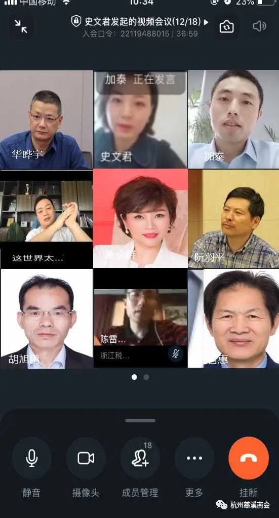 浙商创投行政总裁、商会常务副会长、慈溪市杭州商会党支部书记华晔宇主持会议,杭州茂君发商贸有限公司董事长、商会副会长、慈溪商会党支部书记史文君,杭州盾良机电设备工程有限公司总经理、杭州商会党支部委员蒋迪新,杭州卡跃科技有限公司董事长、商会理事张松,杭州姆珉网络科技有限公司副总裁胡鹏旭,杭州雅晟商务信息咨询有限公司总经理黄承,浙江互联互通文化传播有限公司总经理陈雷特,浙江九章资产管理有限公司经理李桑桑和商会执行秘书长、党建联络员沈含惠等党员以及党员发展对象和入党积极分子杭州凯元丝绸有限公司董事长、副会长阮羽平,杭州时和网络科技有限公司董事长、副会长黄国栋,杭州开星贸易有限公司董事长、理事施央群,杭州辰萱房地产营销策划有限公司董事长戴建杭等14人参加了视频会议。