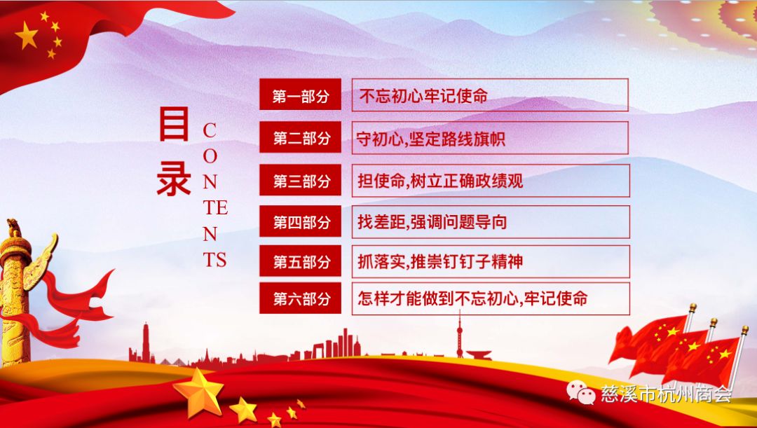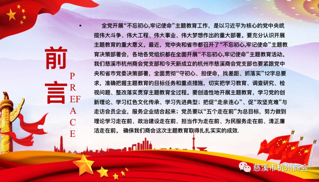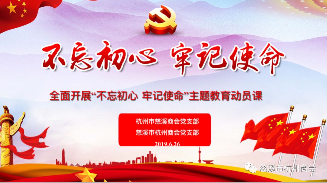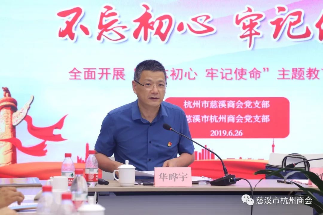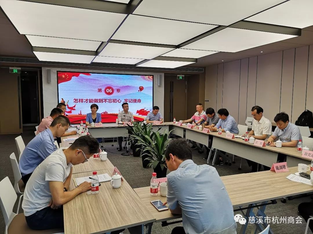 2019年6月26日,慈溪市杭州商会和刚刚成立的杭州市慈溪商会党支部,在钱江-浙商创投中心举办《全面开展“不忘初心,牢记使命”主题教育学习活动》,由商会法定代表人、常务副会长,慈溪市杭州商会党支部书记华晔宇授党课。