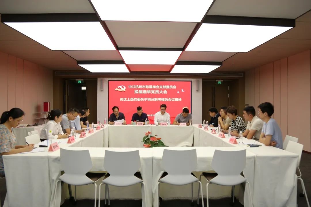 9月28日下午,中共杭州市慈溪商会(慈溪市杭州商会)支部委员会召开换届选举党员大会,会上先认真学习了《中国共产党章程》,传达上级党委关于积分制考核的会议精神。然后,换届选举大会选举产生了新一届支部委员会委员;支委会选举华晔宇同志为杭州市慈溪商会党支部书记,蒋迪新同志为慈溪市杭州商会党支部副书记,黄承、陈雷特同志为杭州市慈溪商会支部委员,邹长国、潘高峰同志为慈溪市杭州商会支部委员。大会有12名党员出席会议,4人列席会议。