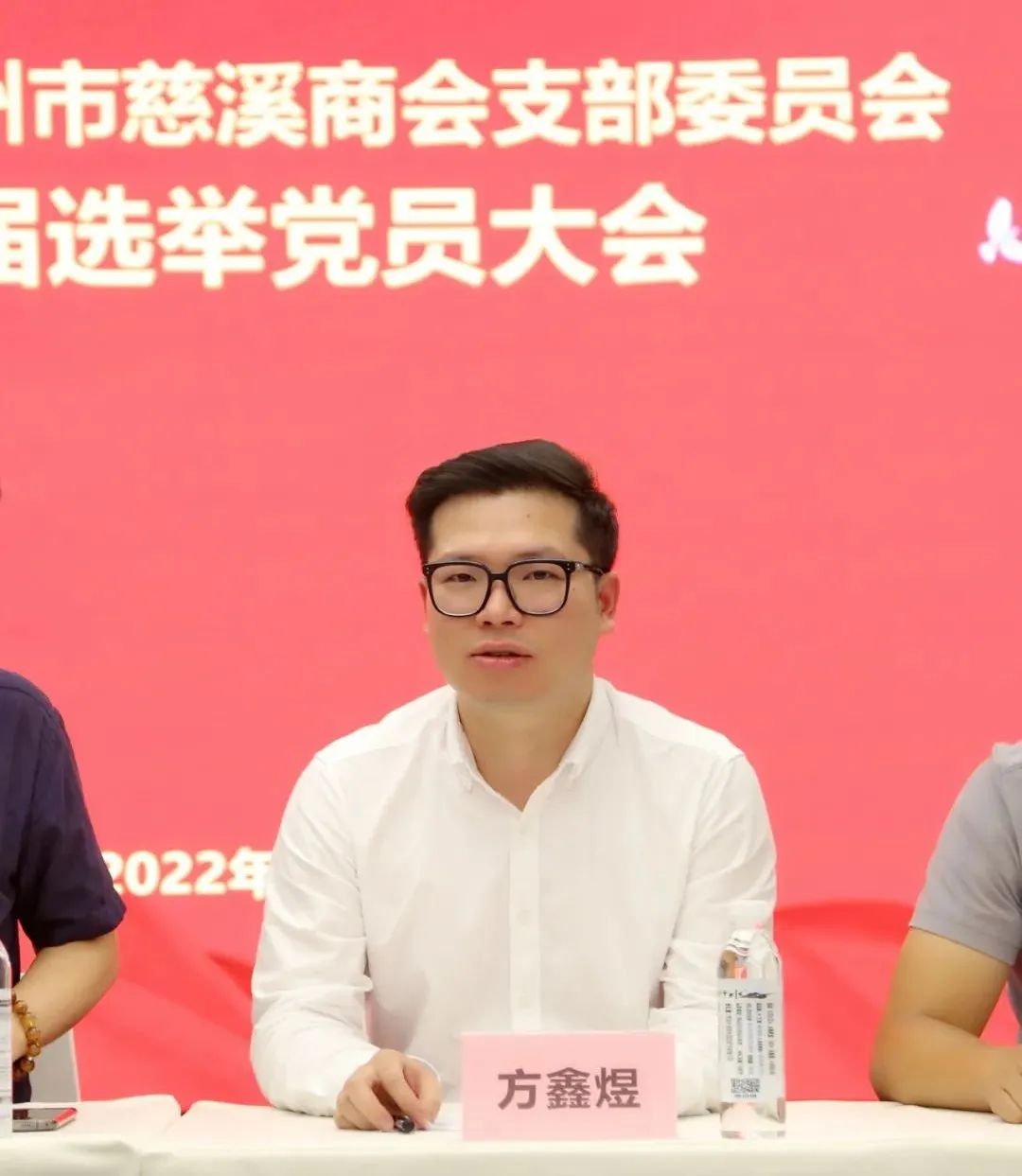 换届大会复会,沈秘书长宣布支委会议票选结果:华晔宇同志担任杭州市慈溪商会第二届支部委员会书记,黄承为宣传、青联委员,陈雷特为组织、纪检委员;蒋迪新同志担任慈溪市杭州商会第二届支部委员会副书记,邹长国为纪检委员,潘高峰为组织委员。报上级党委审批。