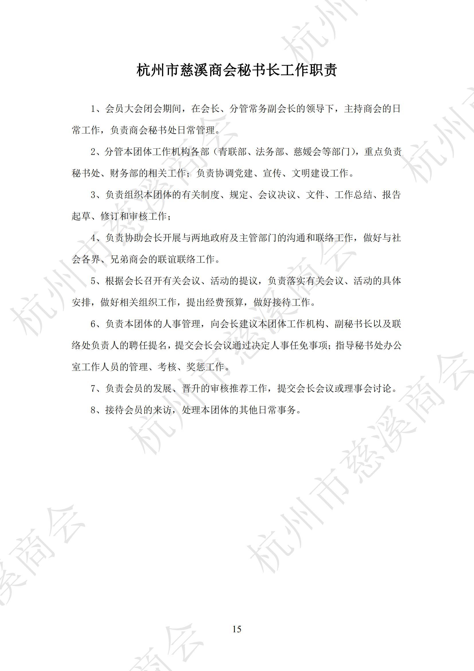 秘书长工作职责