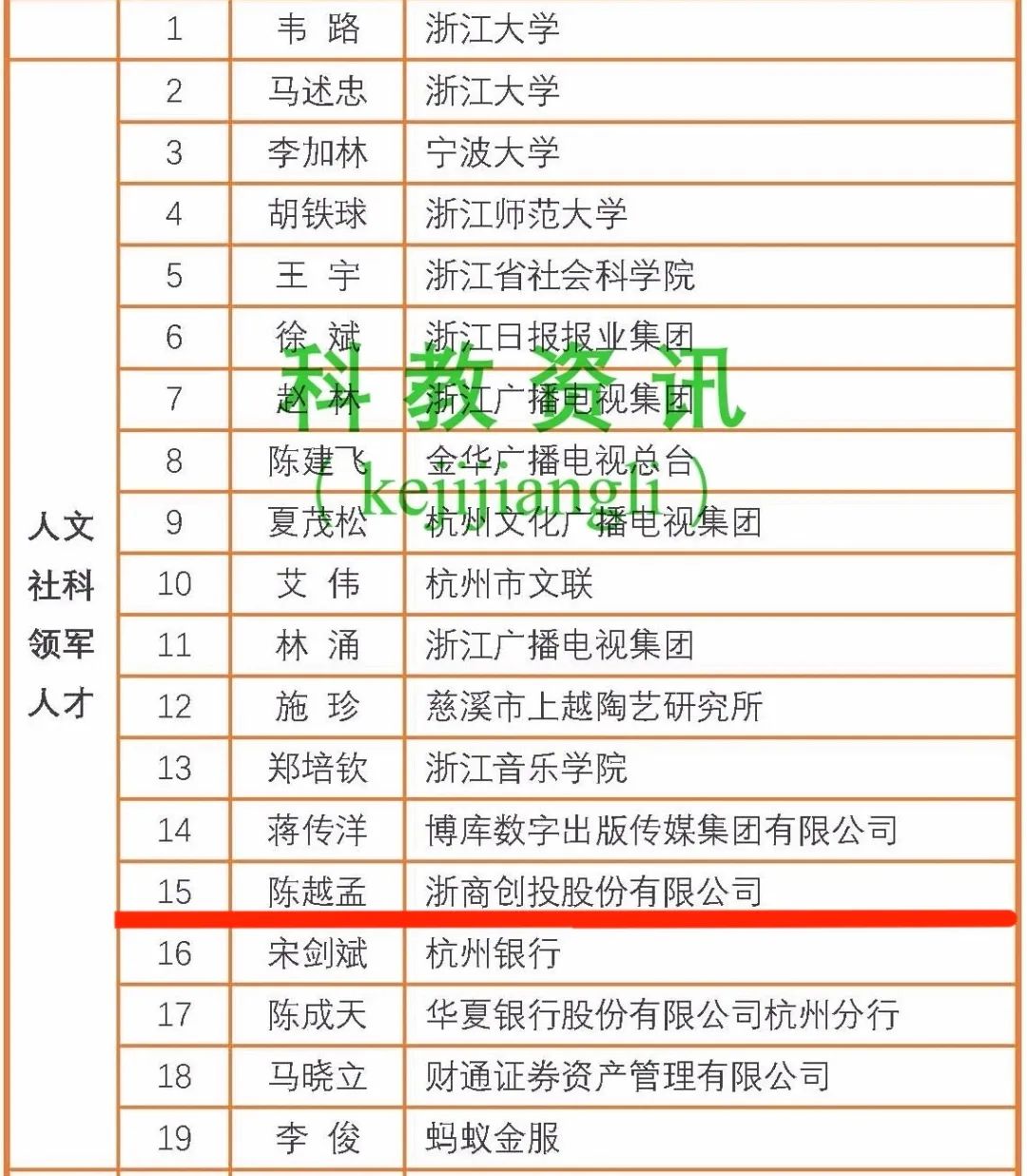 日前,2019年浙江省“万人计划”建议人选公示结束。其中,杭州市慈溪商会会长、浙商创投董事长陈越孟获评“万人计划”领军人才,同时也是创投领域第一位获评人选。
