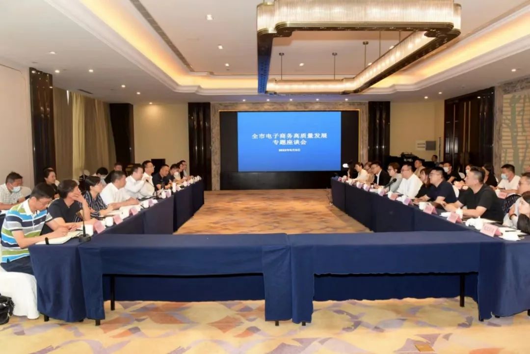6月8日,为加快推动慈溪市电商高质量发展,提升政策举措的精准性实效性,促进慈溪内外贸电商市场主体提质发展、创新发展、集聚发展,慈溪电子商务高质量发展专题座谈会在慈溪杭州湾环球酒店召开。慈溪市委副书记、市长章程,副市长周高,市商务局市委组织部(市委人才办)、市发改局、市科技局、市财政局、市自然资源规划局、市金融发展服务中心、慈溪海关、市税务局、古塘街道等领导出席座谈会。