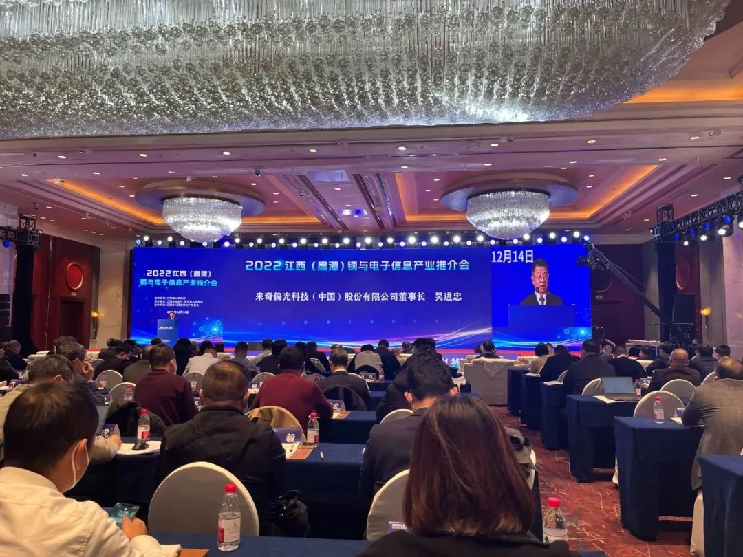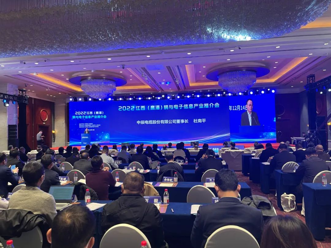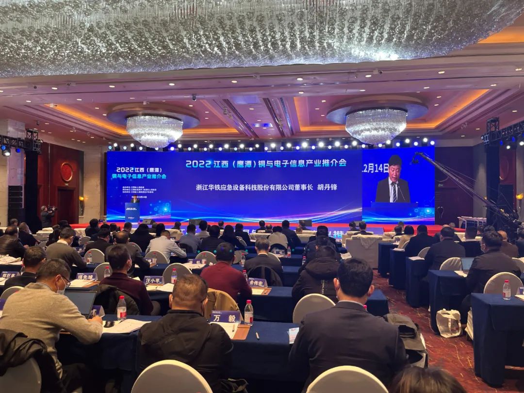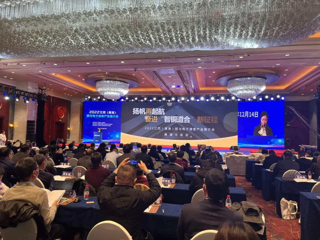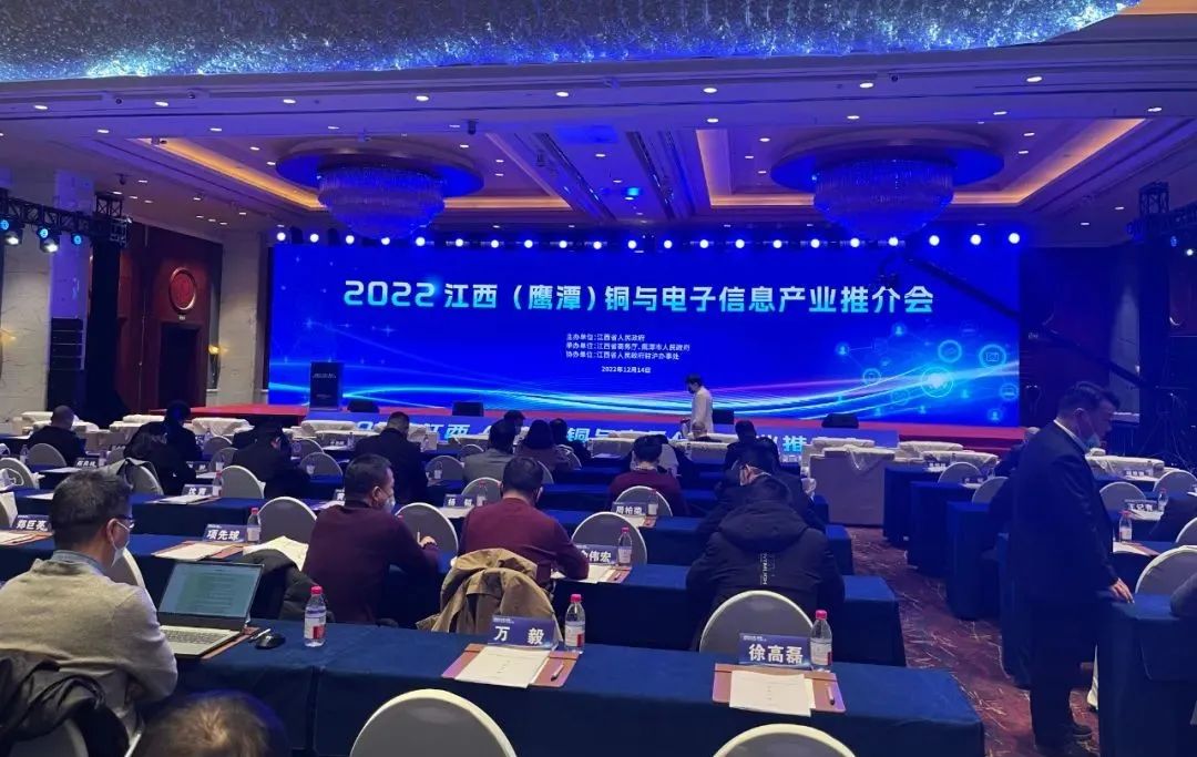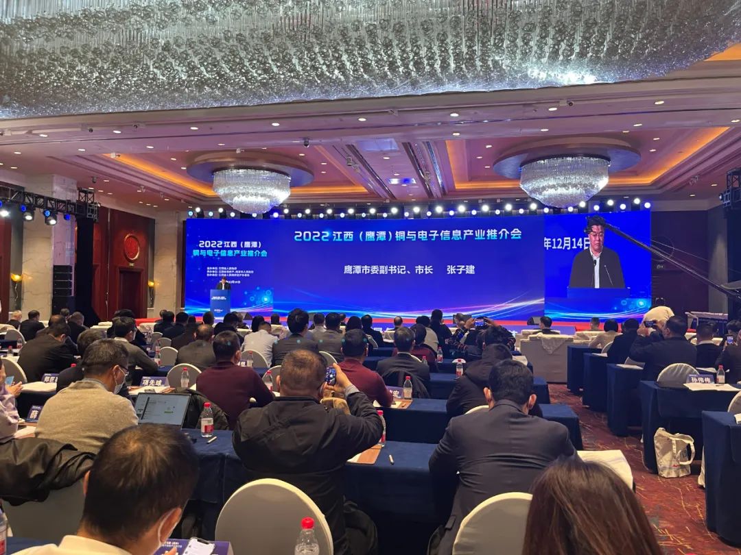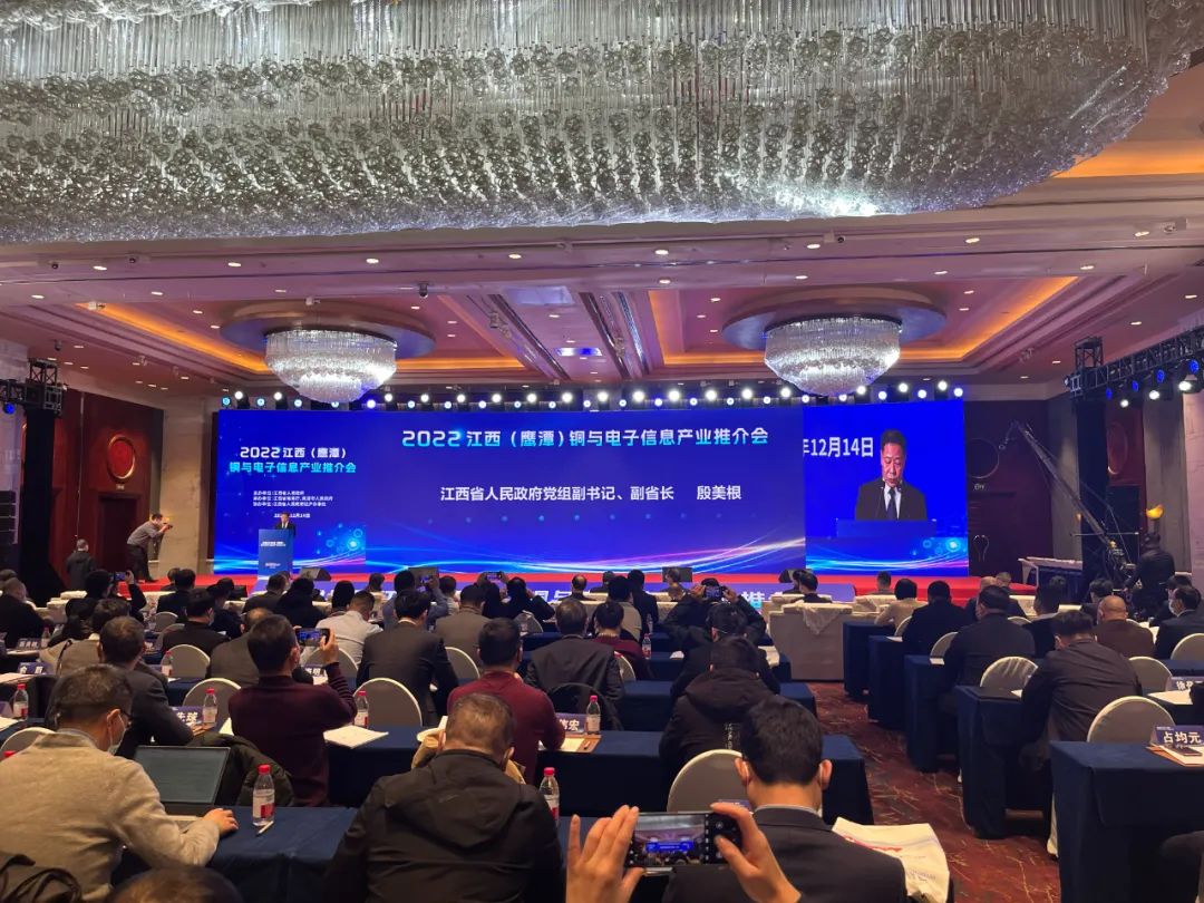 1214日上午,江西(鹰潭)铜与电子信息产业推介会在杭州黄龙饭店水晶宫隆重举行。来自江西和浙江的有关部门领导和企业家180多人出席了推介对接会。杭州市工商联副主席吴隆,杭州市工商联经济合作服务部三级调研员黄海明和直属商会40多家企业代表参加了推介会。