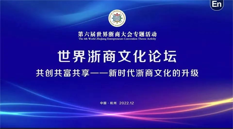 12月7日下午,主题为“共创共富共享——新时代浙商文化的升级”的第六届世界浙商文化论坛,在浙商博物馆四楼多功能厅隆重举行。第六届世界浙商文化论坛,由第六届世界浙商大会组委会指导,浙江工商大学、浙江省工商联、浙江省侨联、浙江省中华文化学院主办,浙商研究院、浙商博物馆、浙商总会学术研究委员会承办。浙江省浙商研究会、浙江中华文化海外传播促进会等协办。