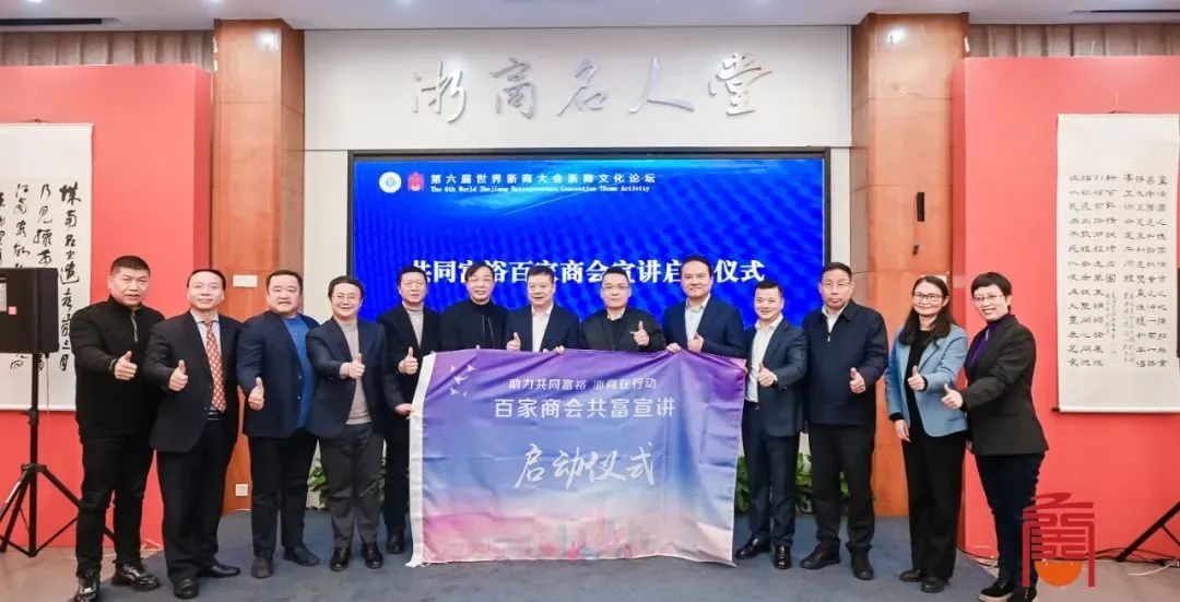 浙商作为浙江省“两个先行”的主力军,构建以“共创共富共享”为核心的企业文化新形态,既符合国家政策导向,也是促进企业凝聚力竞争力提升的重要路径。作为中国民营经济“两个健康”走在前列的先行者,浙商群体中涌现了诸多体现这一指导思想的实践者和受益者,也为其他企业提供了借鉴和启发。第六届世界浙商文化论坛会上为“浙商文化共建单位”授牌和“共同富裕百家商会宣讲”启动仪式。杭州市慈溪商会、诸暨商会、泉州商会等十家商会授予“浙商文化共建单位”铜牌。
