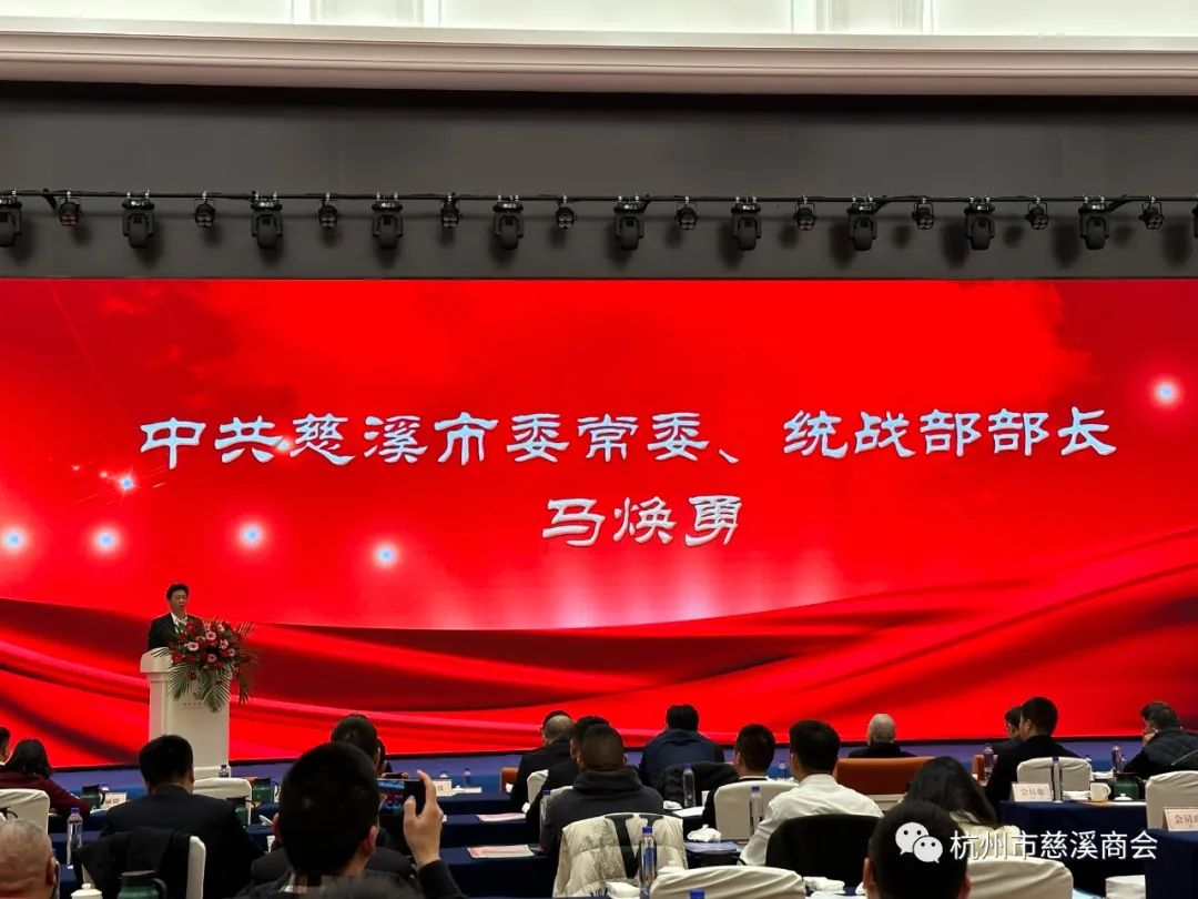 慈溪市委常委、统战部长马焕勇出席会议并讲话,慈溪市政协副主席、党组成员徐国强,慈溪市委统战部副部长、市工商联党委书记罗小利,副主席陈百挺、孙建区等领导出席会议。