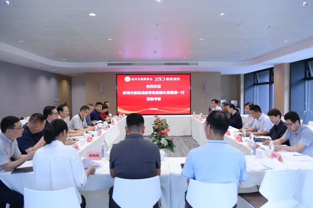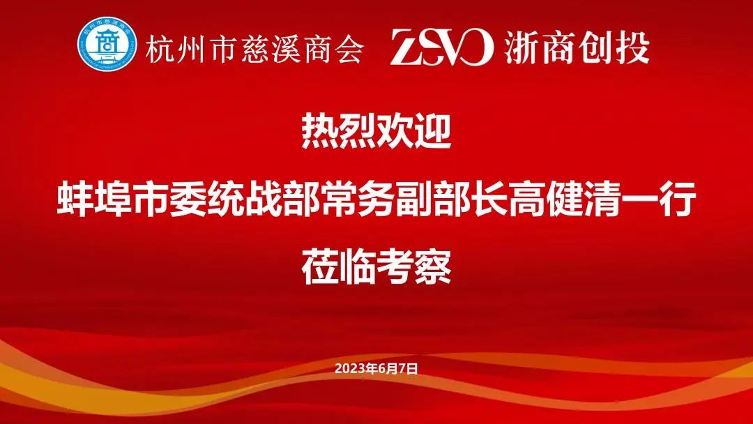 为加强两地企业互动交流、共建共创共谋发展,6月7日,安徽省蚌埠市委统战部常务副部长高健清一行莅临杭州市慈溪商会和会长单位浙商创投参观考察、座谈交流。受到慈溪商会常务副会长、支部书记华晔宇,商会法定代表人、常务副会长徐恩和秘书长沈含惠等的热烈欢迎和热情接待。