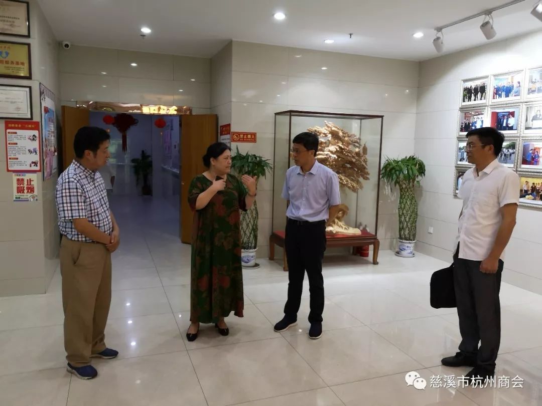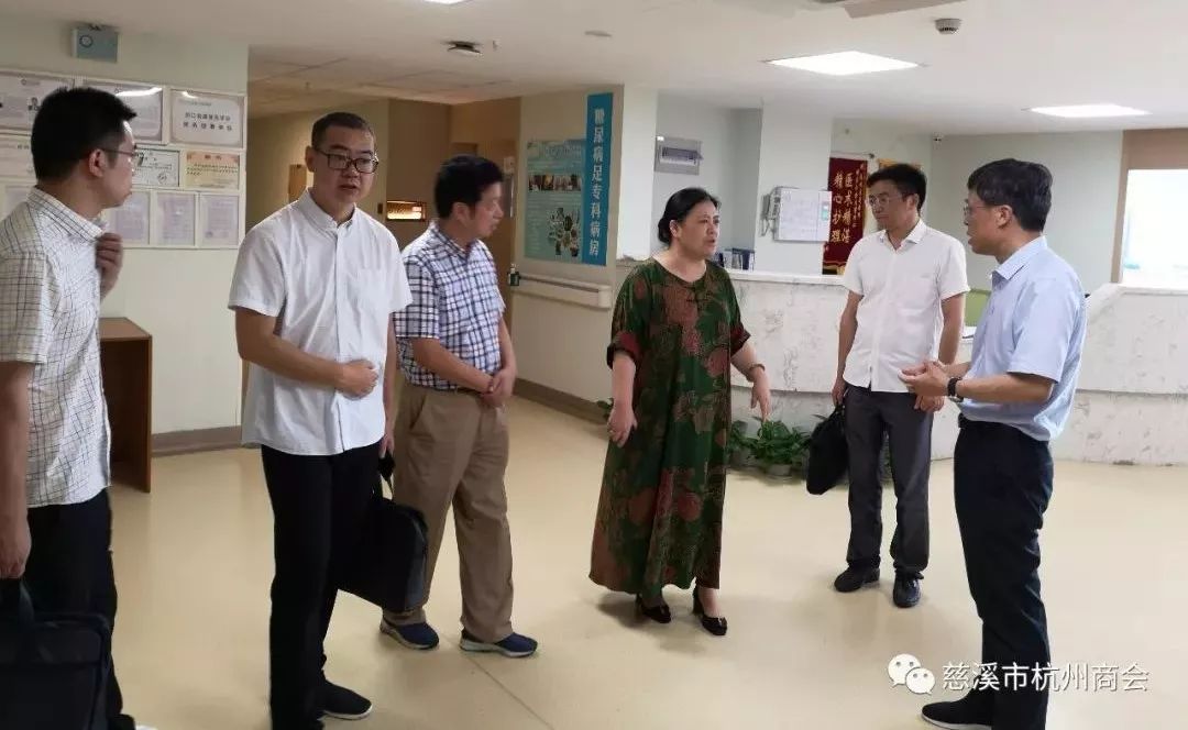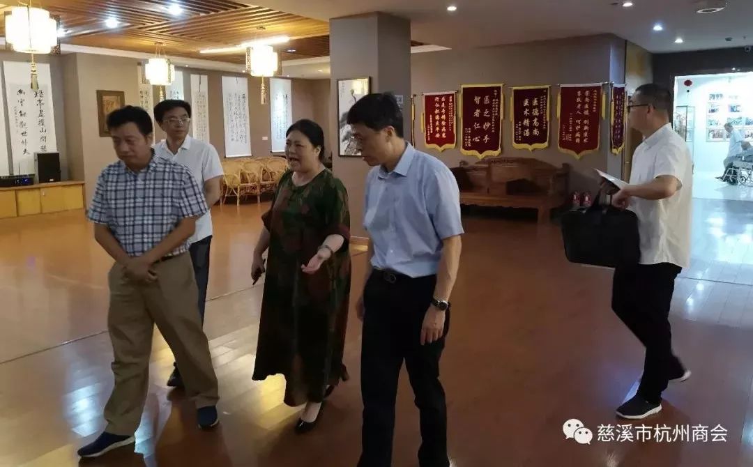 7月18日上午,慈溪市委常委、统战部部长张红军,市统战部正局级干部黄建岳,市统战部部务会议成员、市侨联副主席沈皋安,市工商联副主席陈百挺和统战部办公室卢银鼎等一行莅临杭州市慈溪商会和慈溪市杭州商会副会长单位浙江蓝天清水湾旅业有限公司下属杭州求是医院和杭州馨和园颐养院(医养结合养老机构)考察调研。杭州市慈溪商会和慈溪市杭州商会副会长、浙江蓝天清水湾旅业有限公司总经理范菁华热情接待了张部长一行,商会执行秘书长沈含惠陪同考察调研。