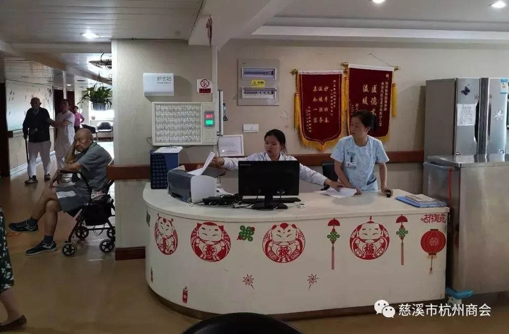 范菁华总经理对慈溪市委统战部张部长等领导莅临考察批导表示热烈欢迎和衷心的感谢!并亲自给张部长一行介绍了杭州求是医院和杭州馨和园颐养院运作情况: 他说,2014年7月,公司在位于杭州市下城区沈家路108号,建成了第一家建筑面积40000余平方米,有800张床位的杭州馨和园颐养院,由杭州求是医院作健康保障配套,正式向社会开放,缓解了杭州社会养老机构不足、养老床位一张难求,养老难的问题,得到了广大养老人群和家人的认可和喜爱,深受社会的高度关注和肯定,也得到了当地政府的大力支持和好评,社会效益和经济效益都比较好。现在杭州馨和园颐养院已有一定的知名度和影响力,床位还是供不应求。馨和园颐养院被评为“浙江省医养结合示范点”、“浙江省养老机构最美家园”称号、“杭州市消费者最爱的养老服务业”等荣誉。
