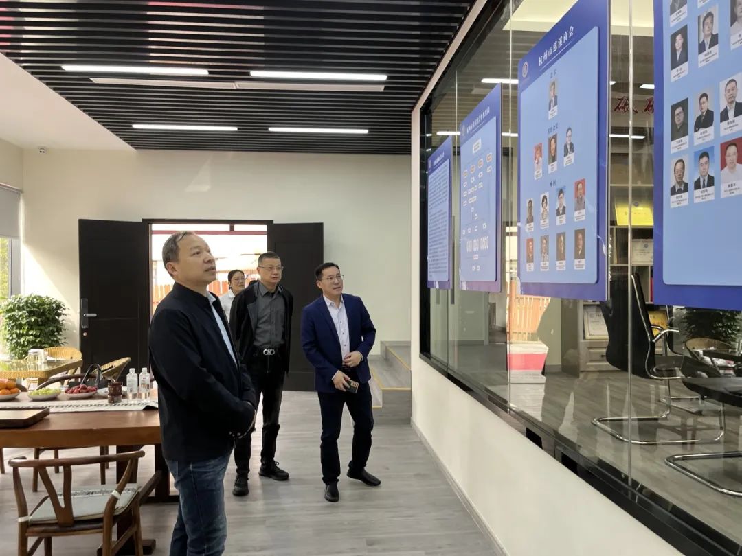 杨建雷一行在商会成员的陪同下参观了商会《会员之家》的办公环境、活动设施及党建文化展示区。在参观过程中,杨建雷对慈溪商会《会员之家》的建设给予了高度评价,这里环境优美,空气清新、非常好,党建园地布置也不错。认为商会《会员之家》作为会员学习交流活动的平台,更体现了慈溪商会对于会员服务的用心和细致。