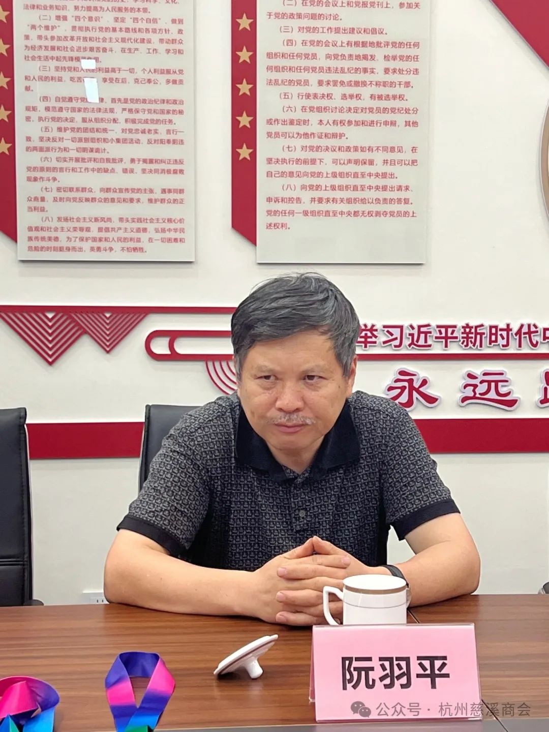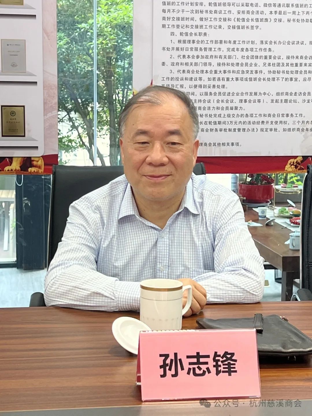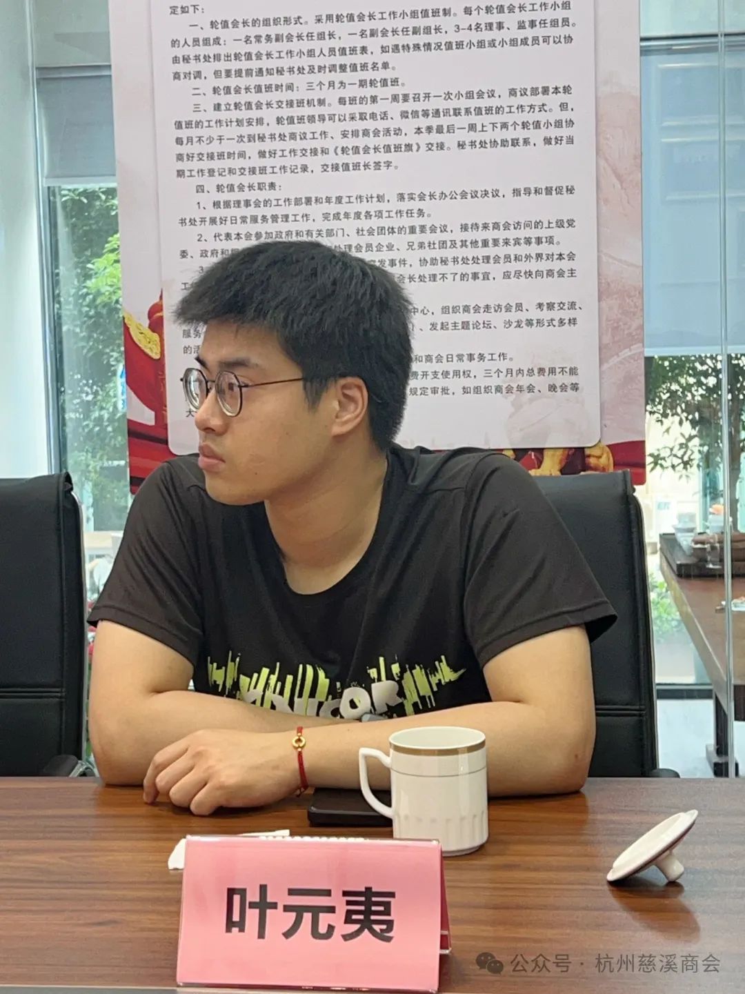浙江省发改委原副主任、慈溪杭州经济建设促进会会长、杭州市慈溪商会名誉会长赵彦年,慈溪杭州经济建设促进会执行秘书长、杭州市慈溪商会顾问邹蔓莉,浙江大学教职工羽毛球协会副会长兼秘书长、浙大慈溪籍专家顾问团团长兼秘书长孙志锋,杭州市慈溪商会常务副会长、轮值会长小组组长阮羽平,常务副会长兼青联部主任罗毅,副会长、轮值会长小组副组长范菁华,副会长兼副秘书长方鑫煜,秘书长沈含惠,办公室副主任黄承、赵炜炜,浙大羽毛球裁判组编排长叶元夷,商会秘书徐静云等参加会议。