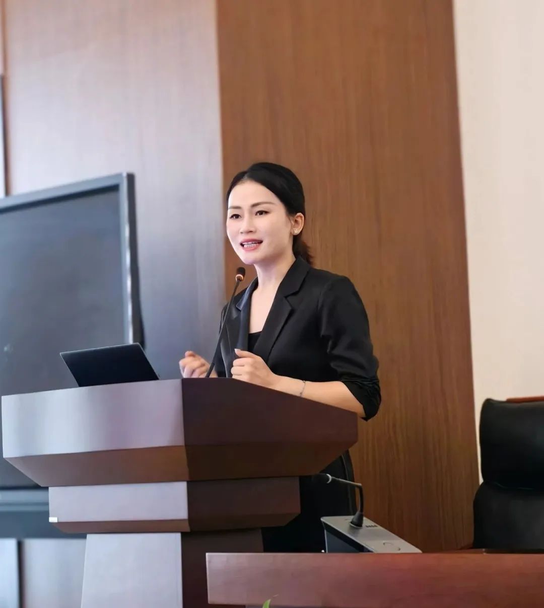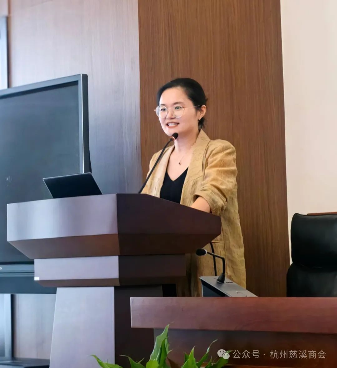 图 市工商联法律社会服务部副部长翁晓丹介绍杭州市工商联(总商会)系统商事调解工作推进方案