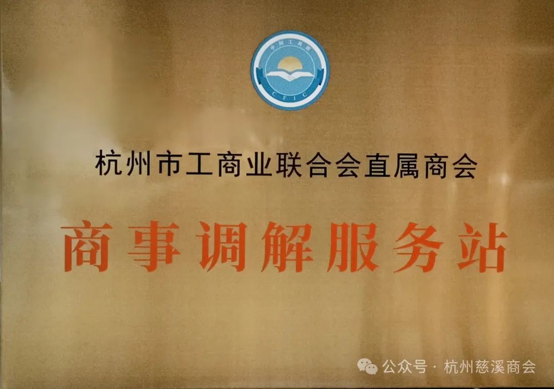 图 慈溪商会荣获“杭州市工商联联合会直属商会商事调解服务站”牌匾
