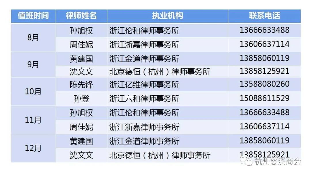 8月13日下午,杭州市慈溪商会和慈溪市杭州商会法务维权部(以下简称法务部)在宁波大厦召开部门座谈会。会议由副会长、法务部主任、浙江康联律师事务所主任康建长主持,商会执行秘书长沈含惠,商会副秘书长、理事、法务部执行主任、浙江伦和律师事务所主任孙旭权,商会理事、法务部副主任、北京德恒(杭州)律师事务所合伙人沈文文,法务部副主任、浙江金道律师事务所黄建国,浙江六和律师事务所孙登律师和商会秘书处赵炜炜秘书等参加会议。商会高级顾问、杭州市宁波商会秘书长邹蔓莉,商会副会长、杭州宝岛眼镜连锁有限公司董事长徐恩,商会副会长、杭州凯元丝绸有限公司董事长阮羽平应邀亲临指导。