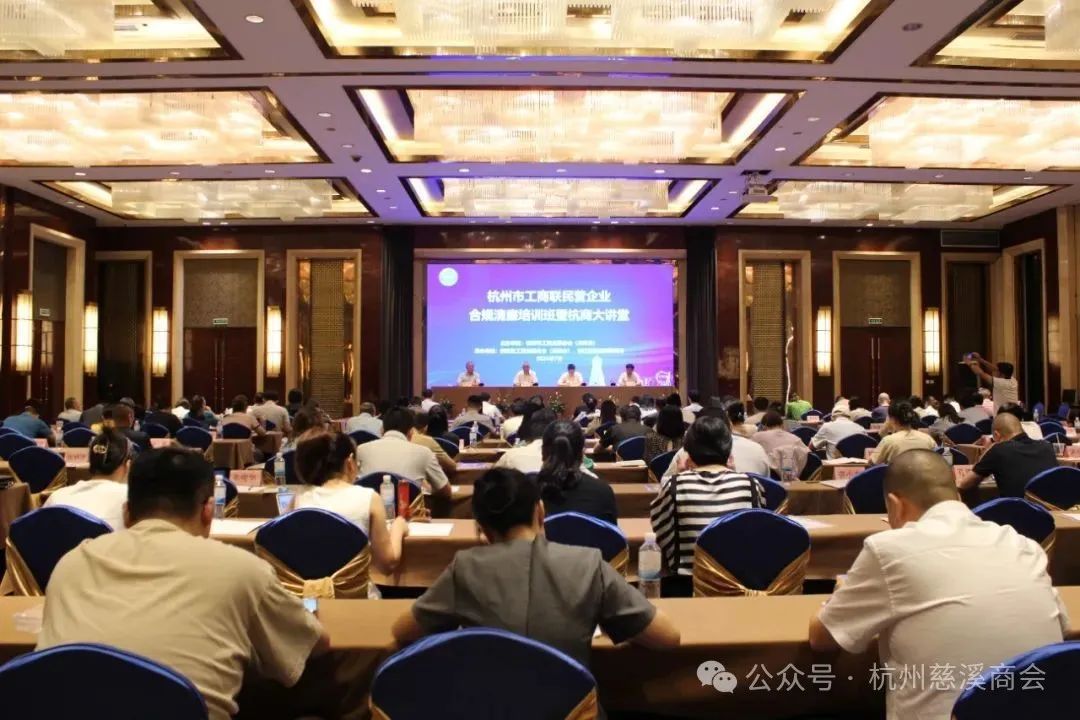 杭州市工商联民营企业合规清廉培训班暨杭商大讲堂7月1819日,提升民企合规意识优化法治营商环境主题民营企业合规培训班,在杭州万华国际酒店4楼万华厅(拱墅区香积寺东路60号)隆重举行。本次培训班由杭州市工商联主办,拱墅区工商联、浙江宏昊律师事务所承办,旨在深化推进杭州市民营企业合规建设法律服务工作,打造法治化营商环境,促进民营经济健康发展,增强企业法律风险防范意识及合规管理能力,建立合规管理体系。杭州市民营企业负责人、高级经营管理人士;杭州市工商联机关相关工作人员;拱墅区工商联相关科室负责人等共100余人参加活动。杭州市工商联党组成员、副主席吴隆,拱墅区委常委、统战部部长余荣升,拱墅区委统战部副部长、区工商联党组书记方进出席开班仪式。PART.01领导讲话开班仪式上,余荣升代表拱墅区委、区政府向参加开班仪式的领导和企业家们表示欢迎并介绍了拱墅投资发展环境和产业发展优势。他指出,杭州是民营经济发展的先行者和领头羊,拱墅更是民营经济创新创业的热土。今天的拱墅,正朝着高水平打造时尚之都、数字新城、运河明珠奋力迈进,深入推进14产业赛道建设,大力发展数字经济、智能制造、高端服务业等产业,全力打造营商环境最优区,真诚期待有更多的企业家能够来拱墅投资兴业,参与拱墅经济建设。吴隆为参训企业家们作动员讲话。他指出,推动法治化营商环境建设,是优化营商环境工作的重中之重。市工商联将全面推进新时代法律服务工作,以全方位服务体系,助力做好民营企业涉法纠纷化解相关工作;不断完善法律服务机制,及时为民营企业解惑释难;进一步深化清廉民企建设,共促亲清营商氛围。希望大家珍惜此次集中学习的机会,努力提高法律素养,不断增强法治意识,切实把培训所学运用到企业的管理和发展中,合力促进杭州民营经济高质量发展。PART.02课程培训本次培训班邀请了公安、检察、司法、高校、企业家、律师等各领域各部门的专业讲师,全面聚焦民营企业合规发展关键领域、重点环节,围绕习近平法治思想、重点产业预防性合规体系建设、企业合同合规、涉企刑事风险预警、民企刑事法律风险解析防范、劳动争议仲裁、新质生产力、税收合规等12项专题进行授课,覆盖面广,针对性强。两天的培训课程内容丰富、节奏紧凑,企业家们积极主动、讨论热烈。PART.03考察参观现场教学环节,企业家们先后考察参观了省清廉民企示范单位浙江建华集团和市清廉民企标杆单位鲜丰水果股份有