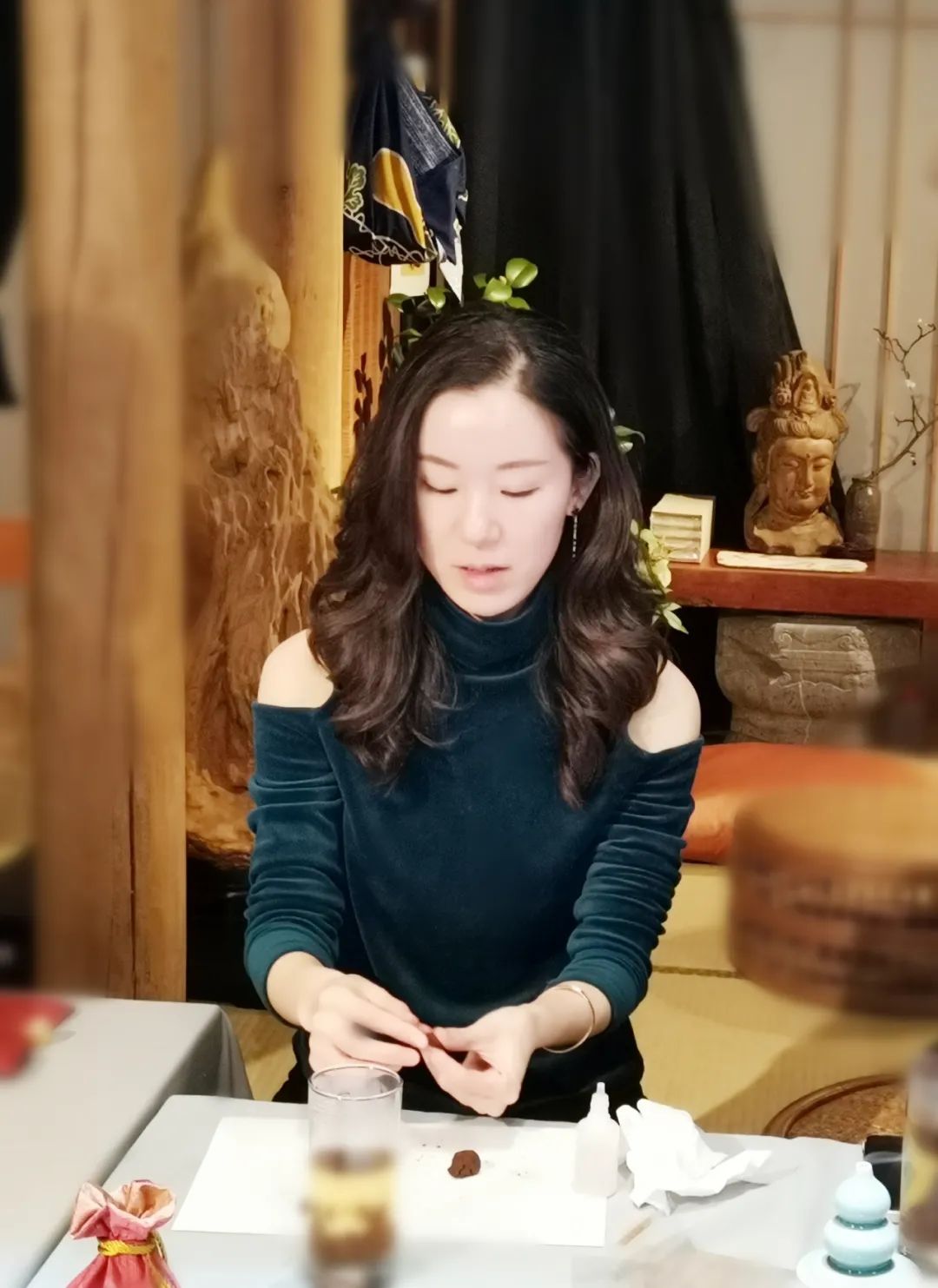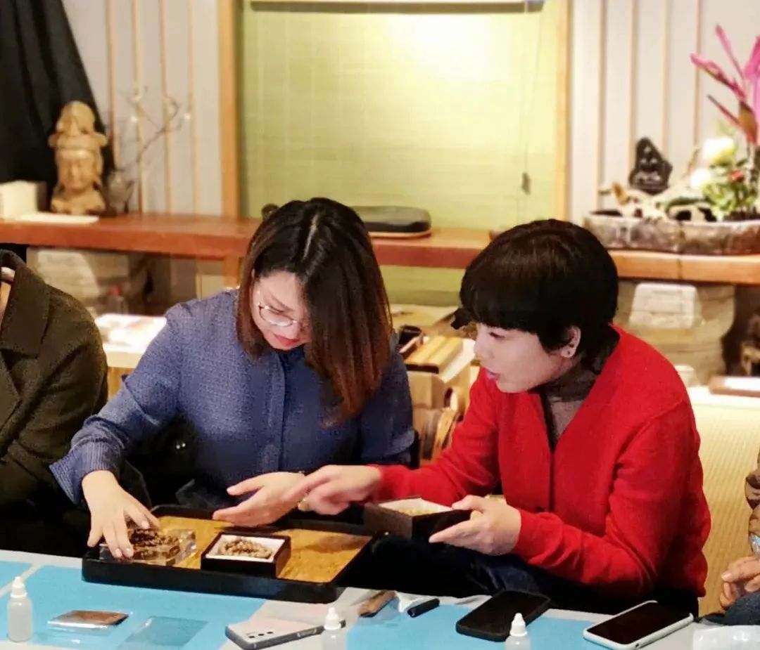 承香堂管微微老师分别介绍了沉香和檀香,它们的品质区分、鉴定方法、收藏地、产地、功效等知识,并通过亲身品味几款线香和手串,以求更直观、更深刻的了解区分不同品质的香,体味宋韵香文化。最后大家还动手实践,学做蜜炼香丸。