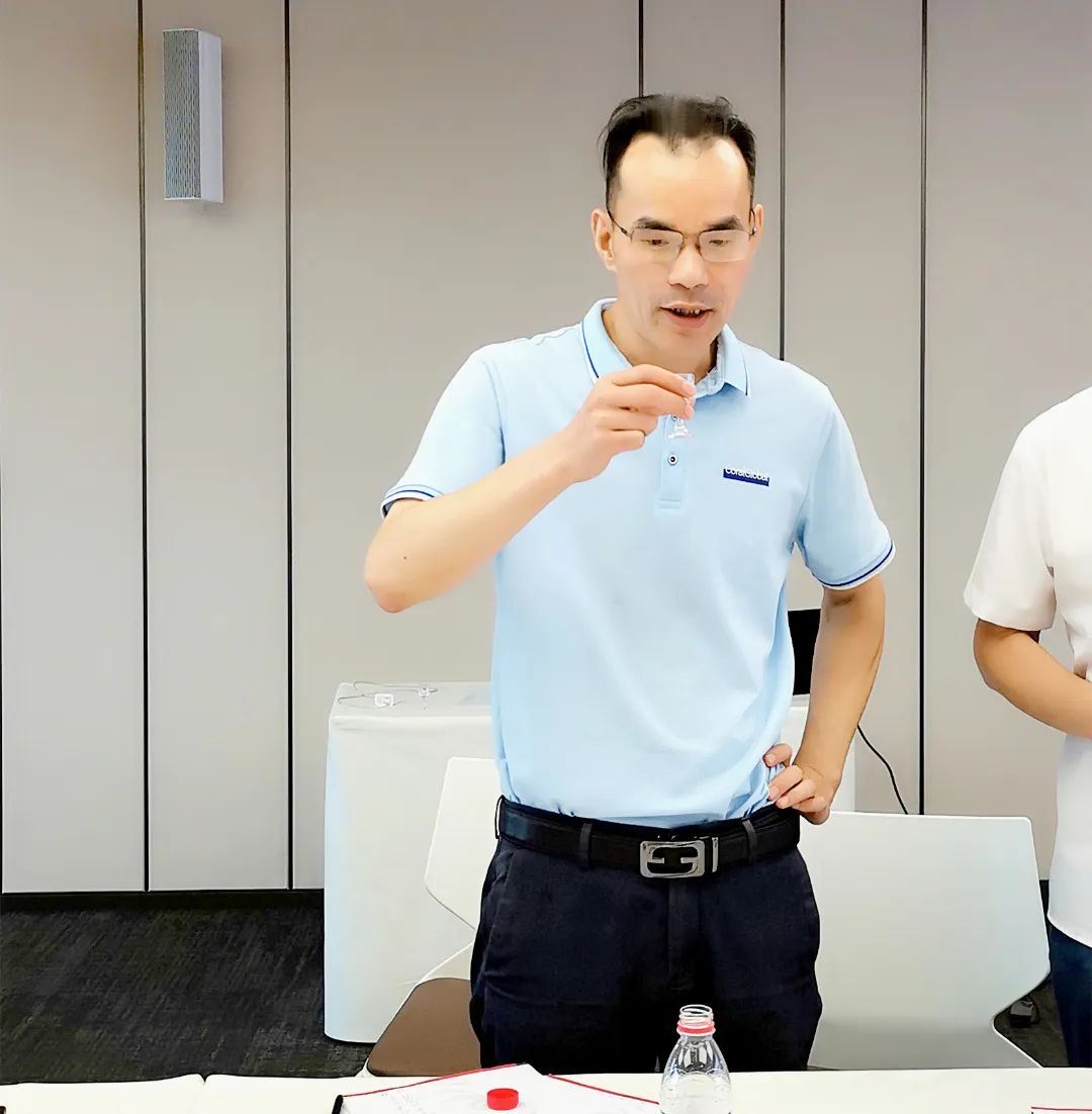 杨院长从白酒分类、白酒香型及代表品种、白酒品评步骤及每一步的不同,品酒相关术语、如何健康饮酒等方面进行展开、指导、互动,解答与会人员的提问。
