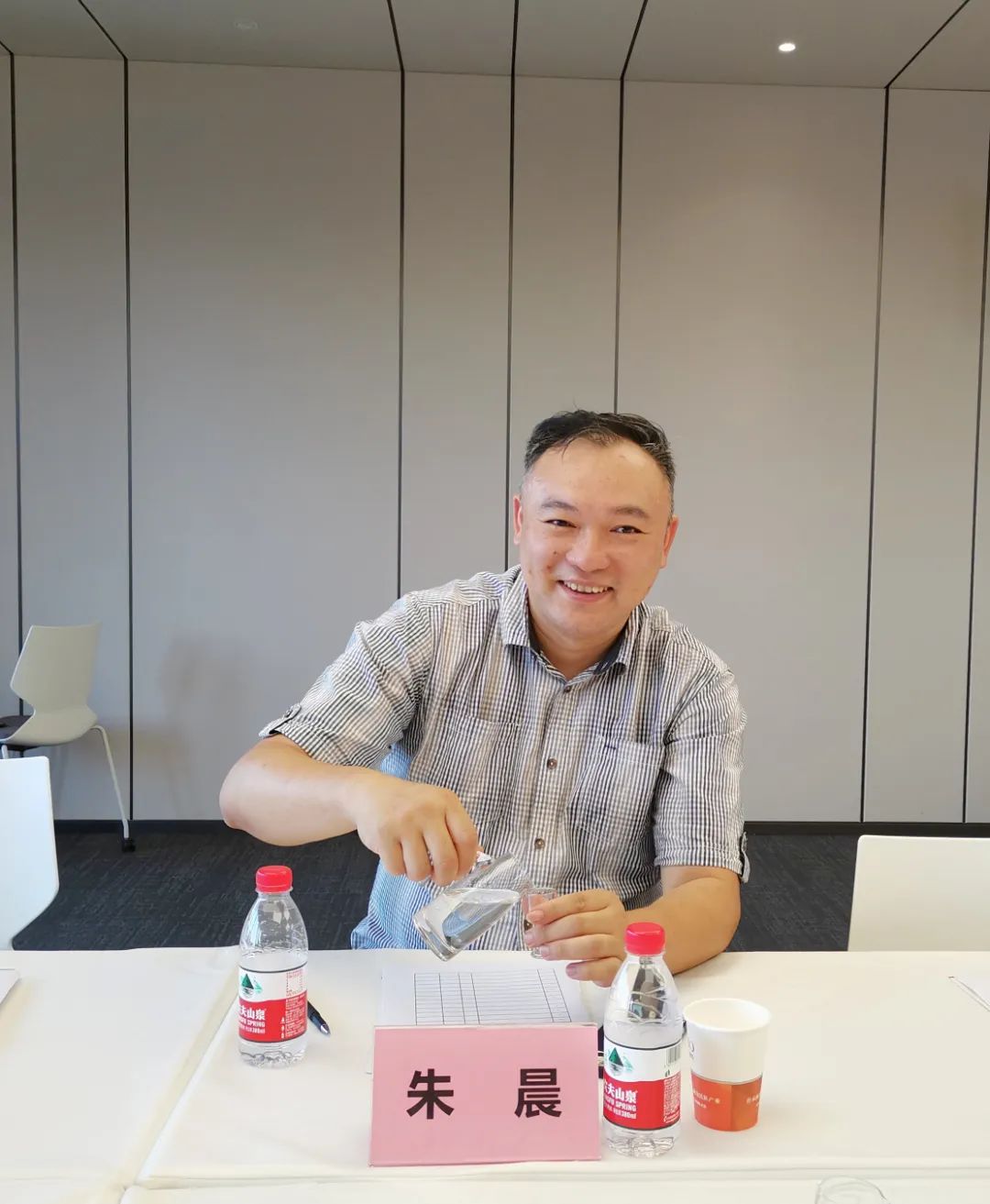 沈秘书长指着桌上16杯白酒样品和其边上的数字编号,跟大家说明了品鉴、选酒的方式:完全盲选。