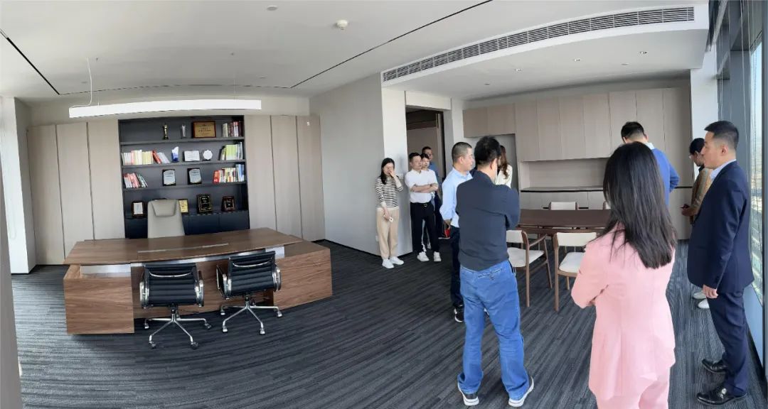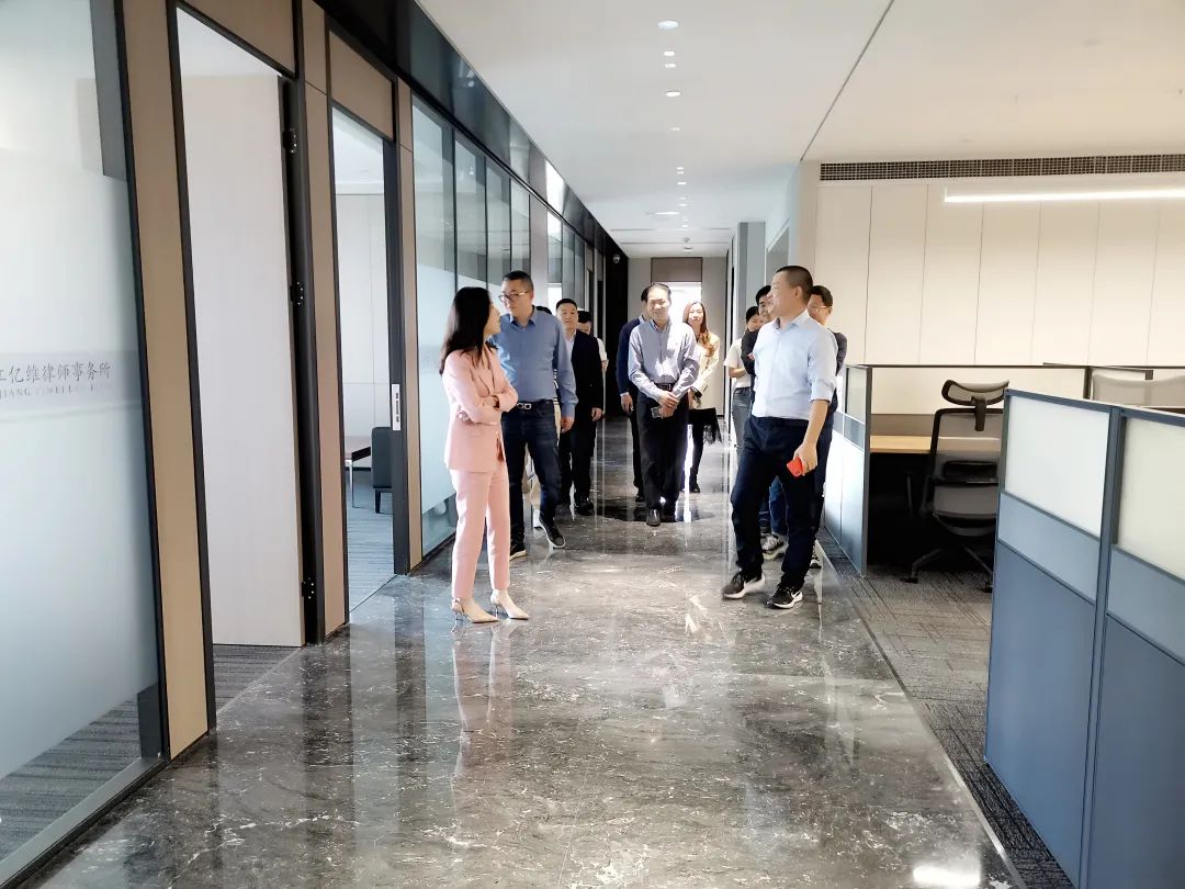 陈先锋主任对商会领导、老乡和同仁们的莅临表示热烈欢迎,他先陪同大家参观了浙江亿维律师事务所的新办公室场所。他说,浙江亿维律师事务所成立于2010年,是一家以知识产权业务为核心同步拓展其他法律服务的综合性律师事务所。近日,亿维律所即将乔迁至位于中国杭州阿里巴巴西溪园区区域的欧美金融城美国中心,原办公地在西湖区要迁到这里余杭区办公办公场所买下了F30一个整层,建筑面积占2000平米。拥有会议室、线上开庭室及休闲区10余间, 律师办公室近20间,员工工位近150个。律所发展十三年以来,一直深耕于知识产权、互联网科技和影视、大文娱行业等法律服务,具有一定影响力。秉承”以客户为核心,为客户创造价值”的理念,为客户提供专业的法律服务,受到客户信任和好评。