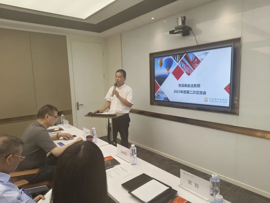 杭州市慈溪商会法务部2023年第二次法务培训交流会,在杭州市钱江路的华润大厦A22楼举行。本次培训会由商会理事单位,商会法务部副主任、北京中伦(杭州)律师事务所主任陈月棋组织承办。特别邀请浙江省工业和信息化研究院·之江产经智库产业政策研究所所长宋婷作专题讲座;陈月棋主任作中国企业全面合规管理方法论与实践分享,受到一致好评。