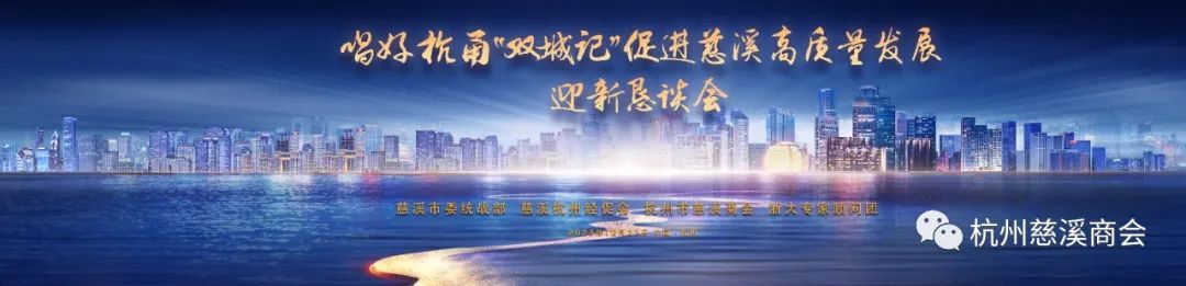 2023年12月22日晚上,由慈溪市委统战部、慈溪杭州经促会、杭州市慈溪商会、浙江大学专家顾问团联合主办的《唱好杭甬“双城记”促进慈溪高质量发展恳谈会》在杭州白金汉爵大酒店隆重举行。