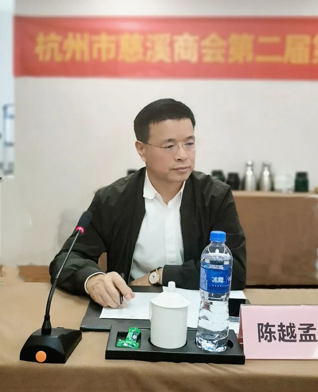 下午17时,杭州市慈溪商会第二届第三次会长会议在杭州蓝天清水湾国际大酒店贵宾楼一楼会议室召开。杭州市慈溪商会会长陈越孟,常务副会长阮羽平、王建敏、华晔宇、汪立群、罗毅、姚碧波、康建长,副会长范菁华、方鑫煜、应迪庆、陈利波、陈钿儿、胡卫国、柴惠丰、徐杭(胡鹏旭代)、华绍炳,监事长张建和,秘书长沈含惠出席会议,办公室副主任黄承、赵炜炜,秘书徐静云列席会议。陈越孟会长主持会议。