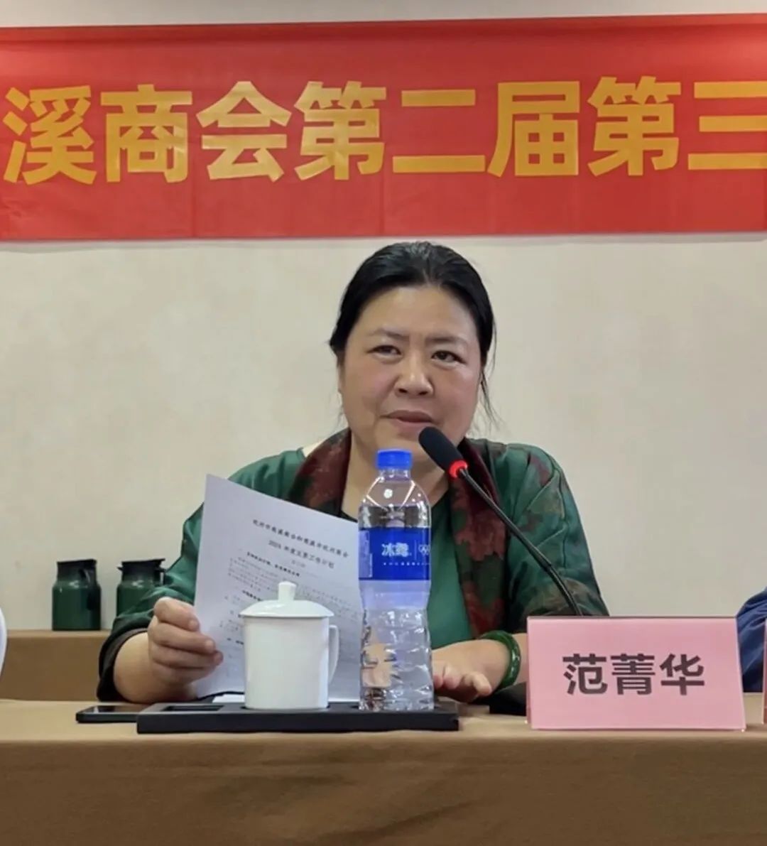 范菁华副会长致辞,她说,热烈祝贺慈溪商会《会员之家》顺利落成交付!感谢陈会长对我的肯定和高度评价。我能为慈溪商会、为慈溪老乡做点事非常高兴。去年当我得知商会在找公办场所时,正好,这幢房子曾是老同志们当画室的房还空着,我就给沈秘书长说,可以免费提供给商会使用,后来商会组织一批商会领导来现场考察,看了都说不错,就这样就定下来了。现在商会重新装修成了《会员之家》,装修效果也不错,可以为老乡们提供一个西湖边的落脚点,大家满意,我也非常开心。希望商会把《会员之家》充分挥作用,为老乡们服务、为商会服务,是非常好的一件事,祝我们慈溪商会越来越好。