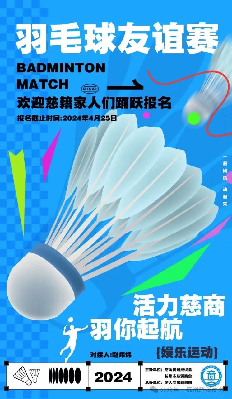 2024浙江大学---在杭慈溪乡贤羽毛球联谊赛是由慈溪杭州经济建设促进会、杭州市慈溪商会主办;浙江大学慈溪籍专家顾问团、浙江大学教职工羽毛球协会承办。
