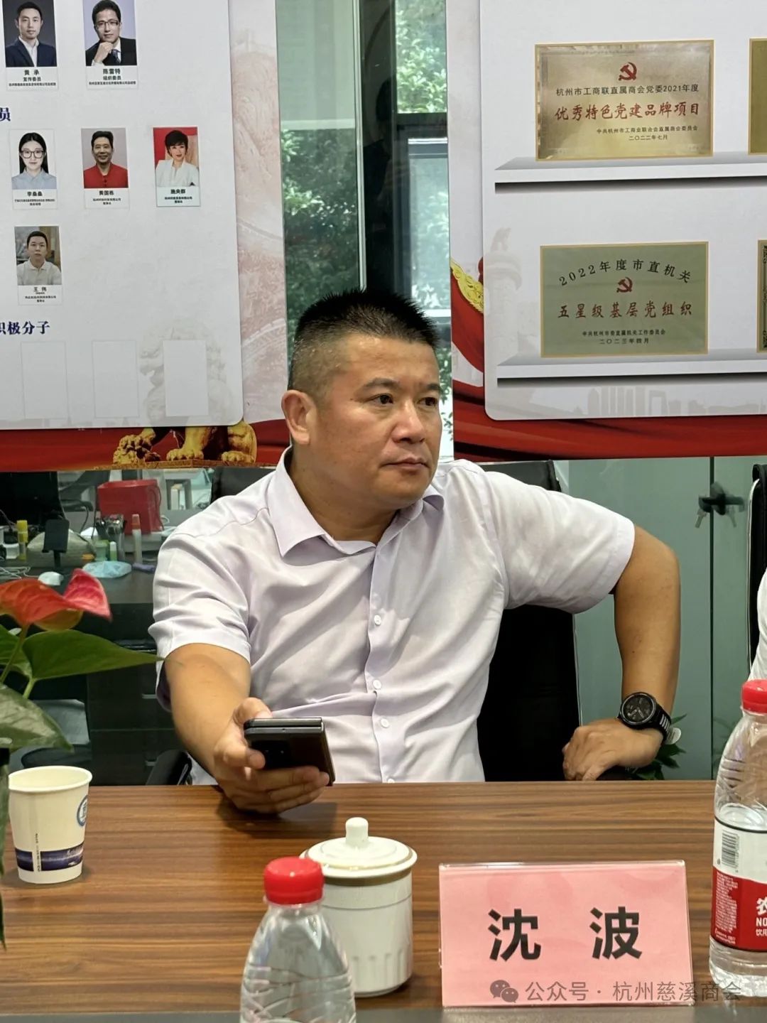轮值会长第五小组组长、杭州比特信息技术有限公司董事长、常务副会长、青联部主任罗毅轮值会长,副组长、副会长、浙江三江资产管理有限公司董事长胡剑波,五小组成员:理事罗烈洪、陈雷特,秘书长沈含惠,办公室副主任赵炜炜,秘书徐静云等参加会议。