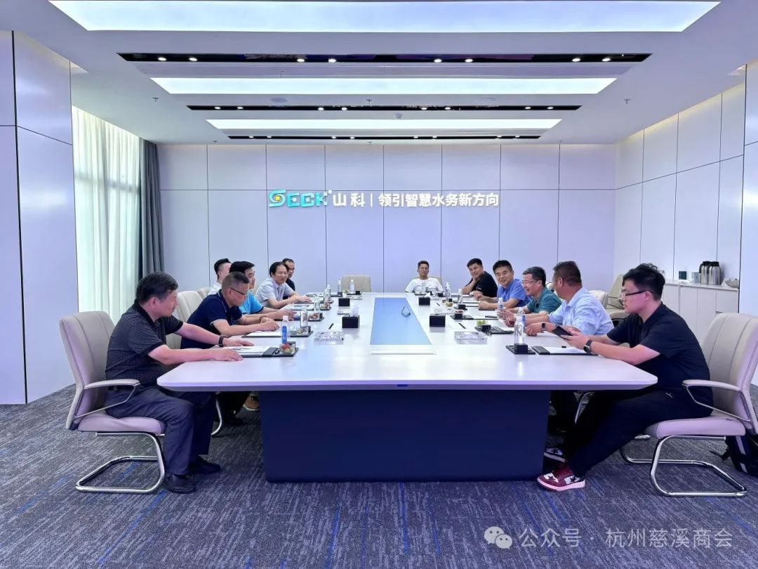 9月6日下午,杭州市慈溪商会组织走访了副会长单位——杭州山科智能科技股份有限公司(余杭区瓶窑镇蒿山头47号山科智能园),并进行座谈交流,受到了山科智能董事长钱炳炯,董事副总经理岑腾云,支部党员岑子彦的热烈欢迎和热情接待,大家共叙乡情,共话发展。此次走访活动不仅加深了会员企业间的了解,更为未来的合作奠定了坚实基础。