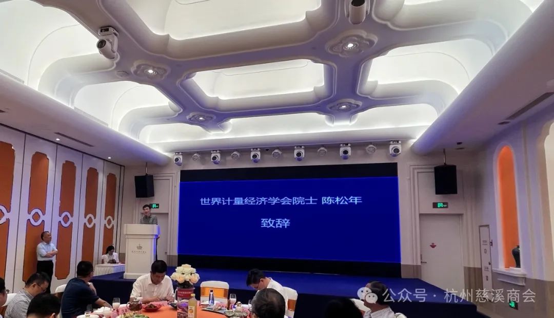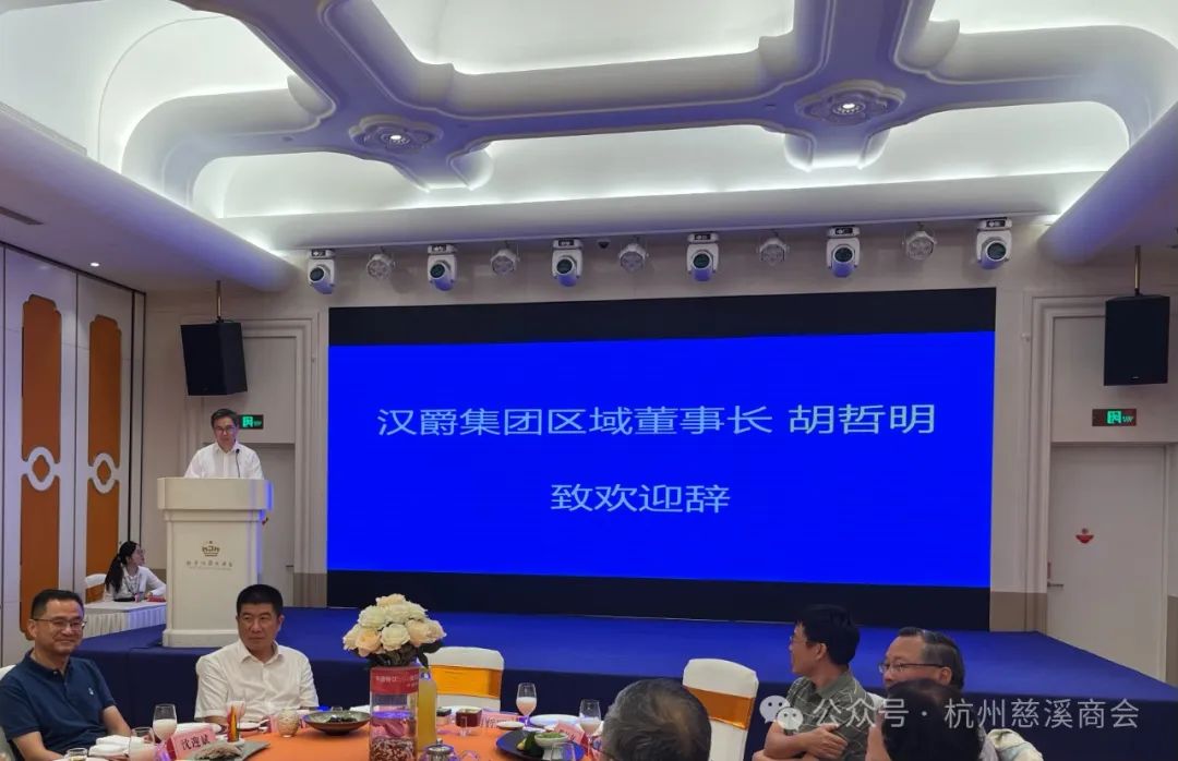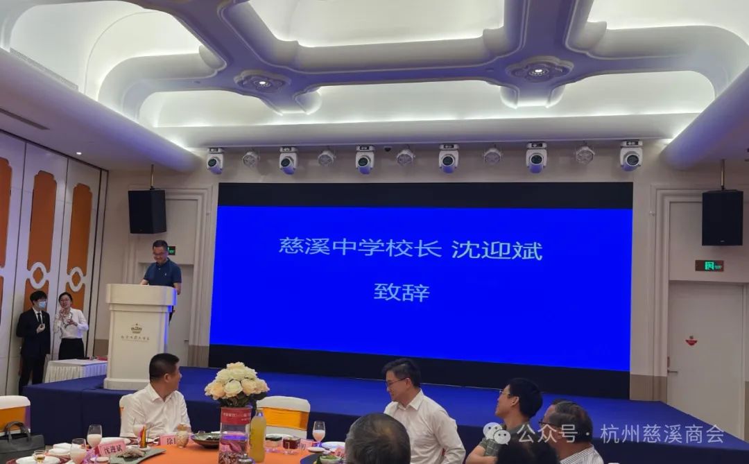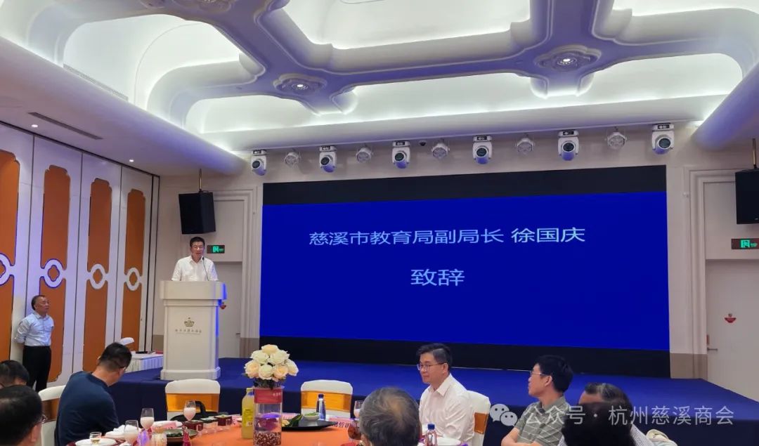 主要发起人,杭州市慈溪商会副会长、汉爵集团区域董事长胡哲明致欢迎辞,慈溪中学校长沈迎斌、慈溪市教育局副局长徐国庆、世界计量经济学会院士陈松年等领导分别致辞。