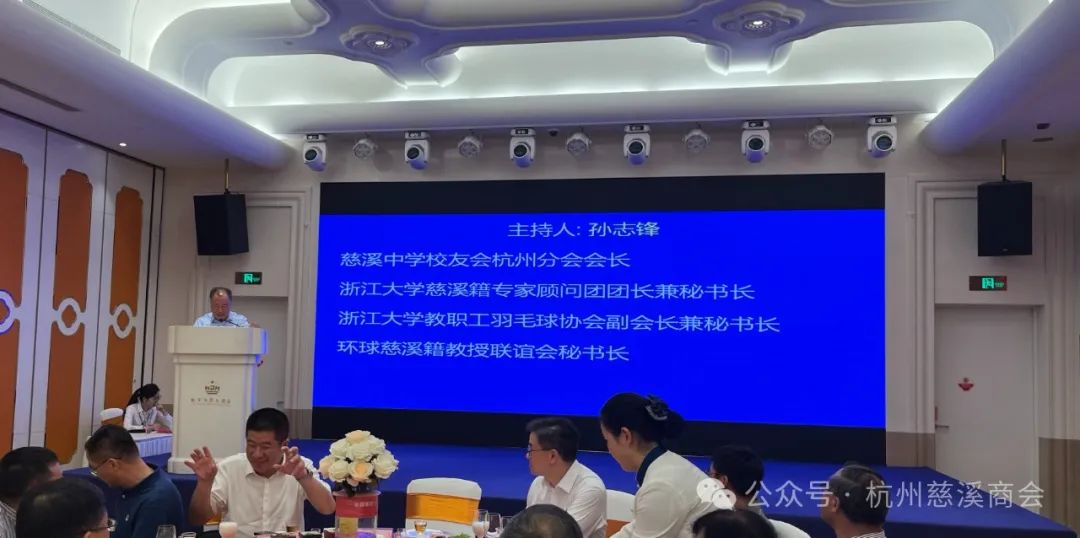 发起人之一,慈溪中学校友会杭州分会会长、浙江大学慈溪籍专家顾问团团长兼秘书长、浙江大学教职工羽毛球协会副会长兼秘书长、环球慈溪籍教授联谊会秘书长孙志锋主持会议。