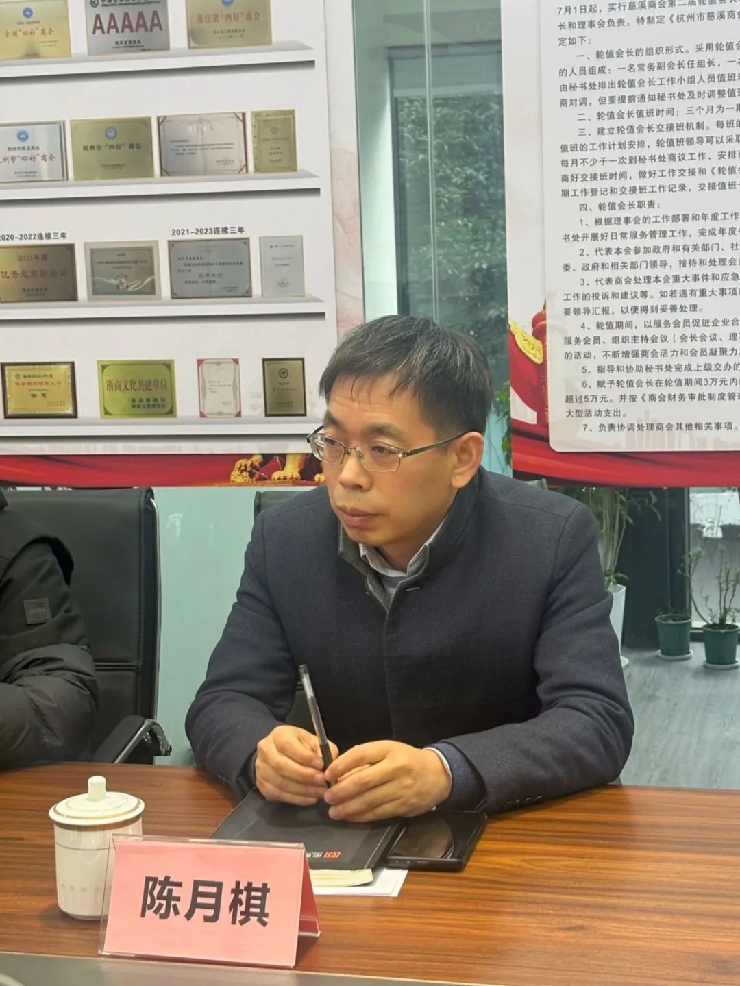 轮值会长第七小组组长、常务副会长、博地控股集团有限公司总裁宓达,副组长、副会长、浙江仁运医药有限公司总经理柴惠丰;成员:理事胡鹏旭、周辉、丁聪儿、陈建立,秘书长沈含惠和秘书处工作人员参加会议。