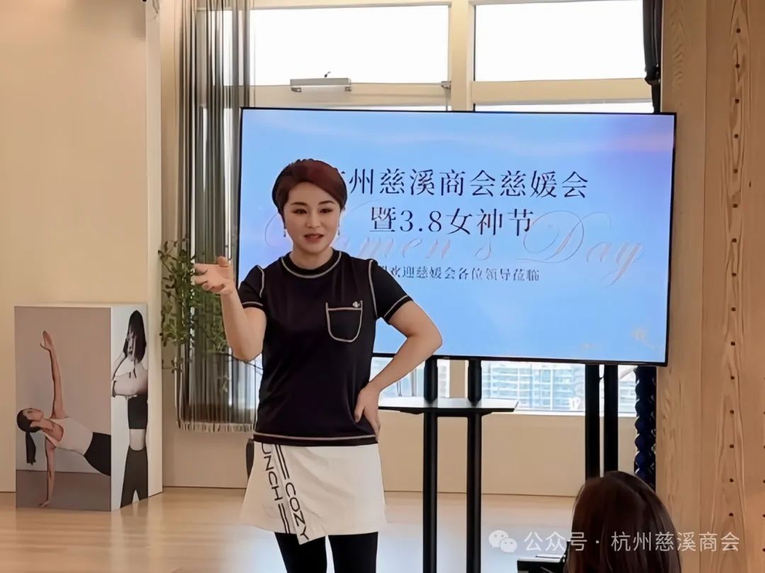 活动开始前,杭州市慈溪商会常务副会长、慈媛会会长、毛戈平化妆品股份有限公司副董事长、毛戈平形象设计艺术学校总校长汪立群发表了热情洋溢的讲话。她首先向全体女性会员致以节日的问候和祝福,并感谢大家一直以来对慈媛会工作的支持与参与。汪会长表示:“作为现代女性,我们不仅要关注事业和家庭,更要关爱自己的身心健康。尤其是在年后,大家一定吃得多了、锻炼得少了,普拉提团课不仅是一次锻炼身体的机会,更是一次放松心情、提升自我的体验。希望大家在活动中享受运动的乐趣,感受慈媛会这个大家庭的温暖。”