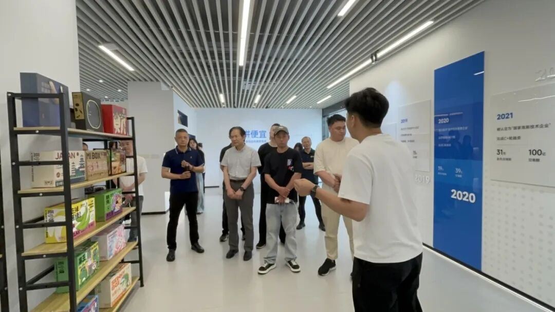 商会一行在拼便宜董事长徐意,联合创始人蒙淮的陪同下参观了企业展厅。蒙淮详细介绍了拼便宜的发展历程、核心业务模式及技术成果,并通过数字化大屏展示了其智能供应链平台实时运营数据。他提到,拼便宜以“技术赋能实体经济”为使命,通过AI算法优化商品采购与物流配送链路,目前业务辐射8省31城,服务百万家中小商户。商会对拼便宜在降本增效、助力中小微企业数字化转型方面的实践成果表示高度赞赏。