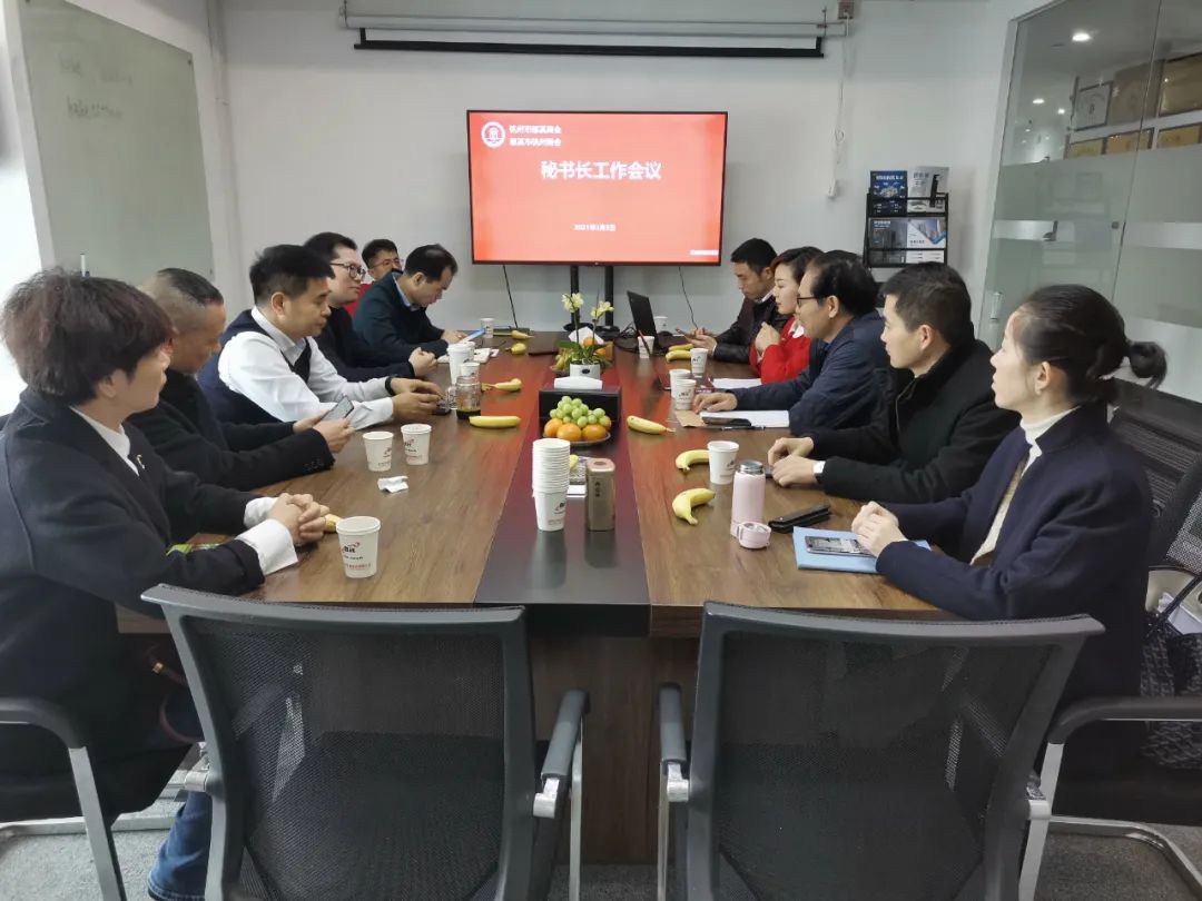 随后进行了秘书长工作会议,秘书长沈含惠主持并讲话。他指出,2021年是十四五规划的开局之年,又是建党100周年华诞,也是商会积蓄力量高质量发展的重要一年。商会的发展离不开各位秘书长、部门负责人和全体会员的共同努力,首先我们要把今年的工作计划搞好,我们群策群力,做好年度工作活动方案提交会长会议讨论,特别感谢今天百忙之中到会亲临指导的商会领导,非常感谢罗毅副会长给我们提供了学习的机会和开会的良好条件。