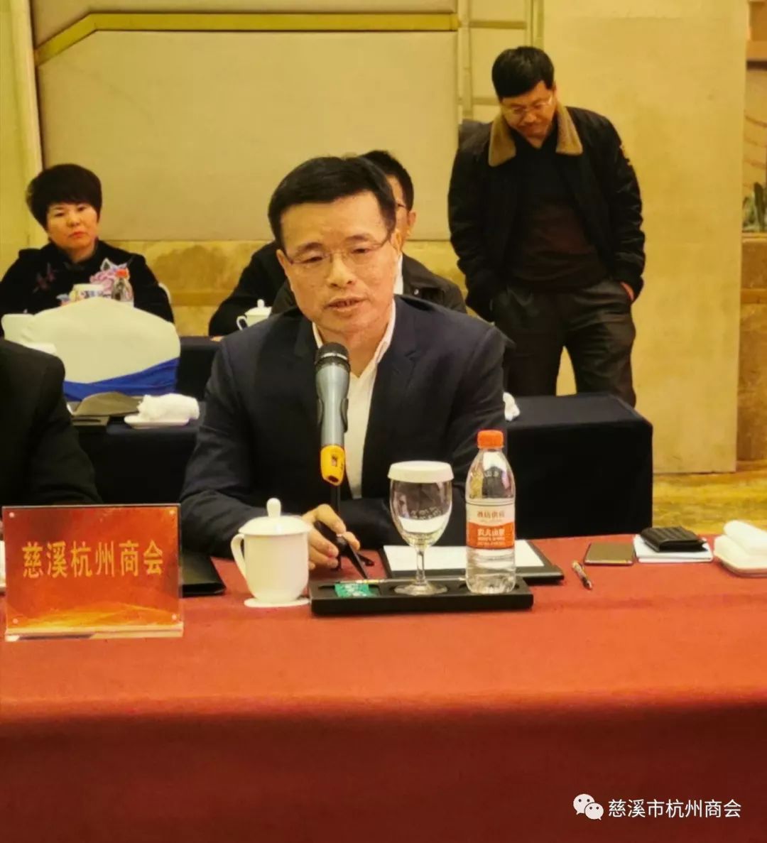 省民建副主委、省政协常委、浙商创投董事长、慈溪市杭州商会会长陈越孟发言,他表示,2019年,杭州市慈溪商会和慈溪市杭州商会在杭州、慈溪两地党委、政府的正确领导下,坚持以服务会员为中心,始终秉承“服务、共享、创新、发展”的办会理念,商会的各项工作都取得了较大进步。并且,商会自成立以来始情牵家乡热土,心系家乡人民,2020年,慈溪杭州商会将继续加强商会的建设和发展,做好服务会员的同时、努力为家乡的经济建设和发展贡献力量。并发表了自己的意见。
