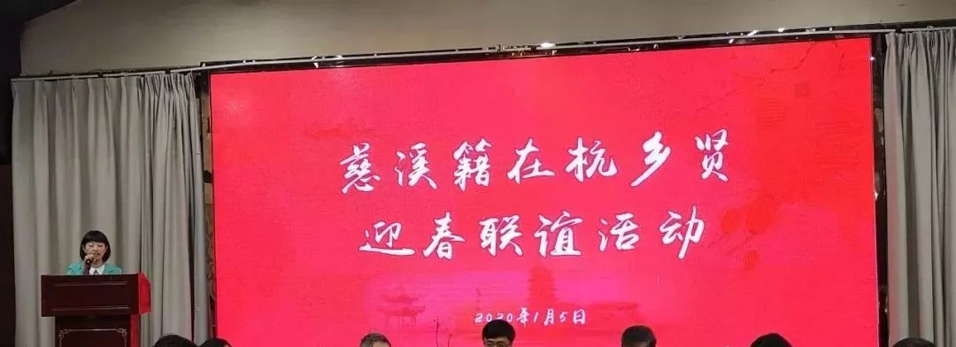 2020年1月5日晚,慈溪市委统战部在杭州浙江蓝天清水湾国际大酒店隆重举行“ 慈溪籍在杭乡贤迎春联谊会”。慈溪市委常委、统战部长张红军、市人大常委会副主任胡建国、市政府副市长励映忠,市政协副主席王益女,市委统战部常务副部长王晓引,市委组织部副部长、人才办常务副主任贺振遥,统战部副部长、侨办主任、侨联主席陈伟凯,统战部副部长龚金富等16位领导专程赶到杭州出席联谊会。慈溪杭州经济促进会领导、浙江大学慈溪籍专家顾问团、杭州市慈溪商会领导等共近130人参加了联谊会。