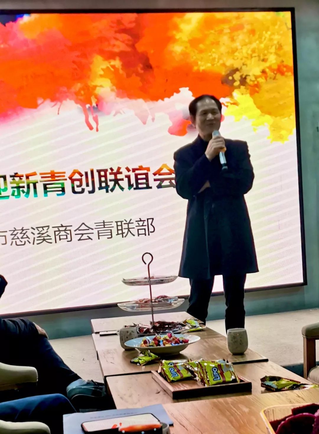 周瑾副主任主持会议,他说:我们杭州市慈溪商会和慈溪市杭州商会青联部在2020年新年到来之时,首次组织这样轻松愉快的联谊活动,共同迎接新年,祝大家在新的2020年创新发展,创业取得更好的业绩。大家平时都忙于工作或生意,我们都是老乡、都是商会会员,但聚在一起座谈、交流沟通的机会非常少,我们青联部组织这次青年创业者联谊会,让大家放松心情,互相交流一下各自的创业历程和经营情况,第一目的是让大家相互认识、了解,有什么项目和经营体会都相互作一下介绍交流。我们信息互通、资源共享,作为老乡要相互关心、相互帮助,如有什么项目,可以合作共赢。
