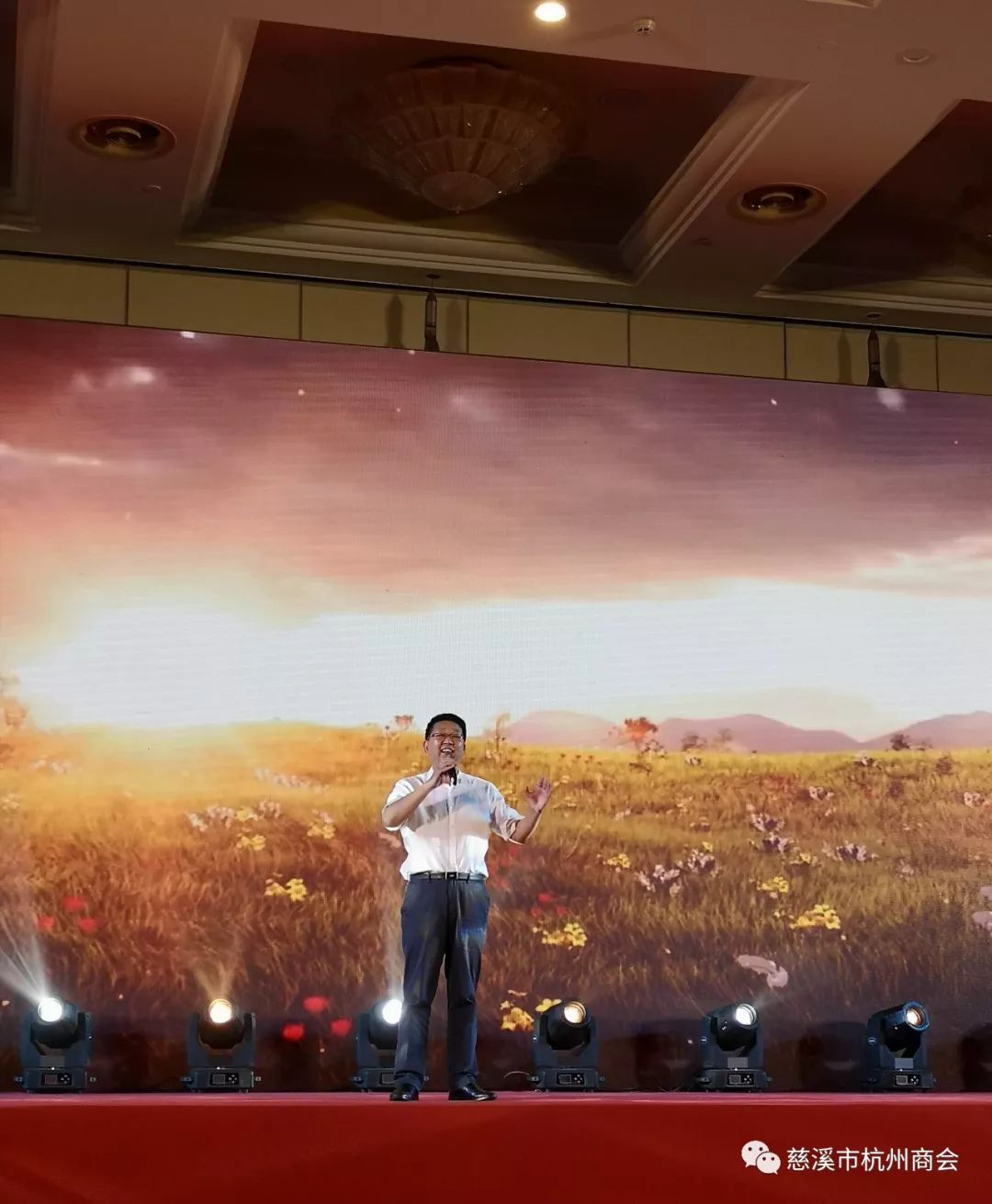 上图 宁波经促会副会长王剑波独唱《草原之夜》