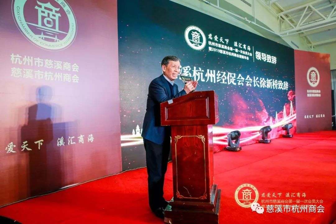 慈溪杭州经促会会长、杭州市慈溪商会名誉会长徐新桥致辞,他说,我今天要说三句话:感谢、感动和感恩。